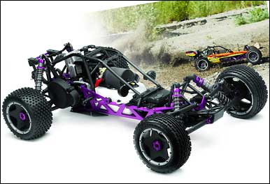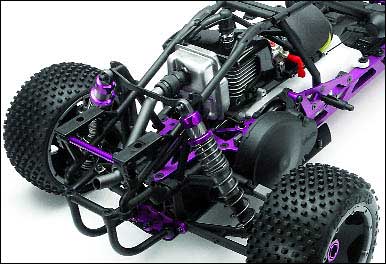 The Baja 5B’s purple anodized chassis is a throwback to old-school