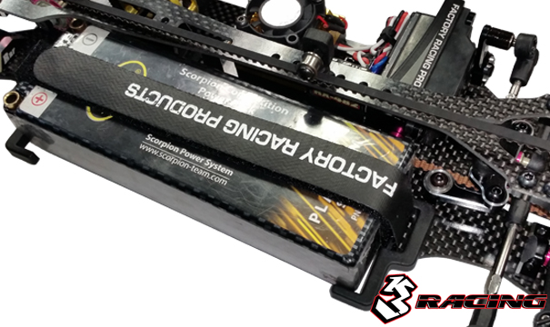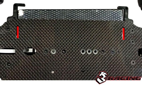 KIT-ADVANCE comes with new plastic designed battery mount to lighten up the kit; however, considered different weight requires on difference races, design team specially added the fiber tape holes on the main chassis which can let the drivers remove the battery mount and use the fiber tape to mount the battery to adjust the car weight.