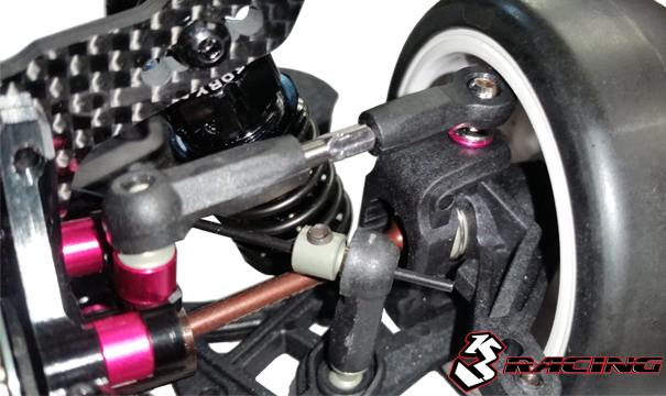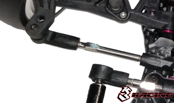Upper linkages use open ball ends on the outer joints which can reduce the chance of tires touching the linkage problem. Also can speed up the time on assemble and remove the linkages when drivers want to replace the spacers to modify the length of the linkage to adjust the car steering response.