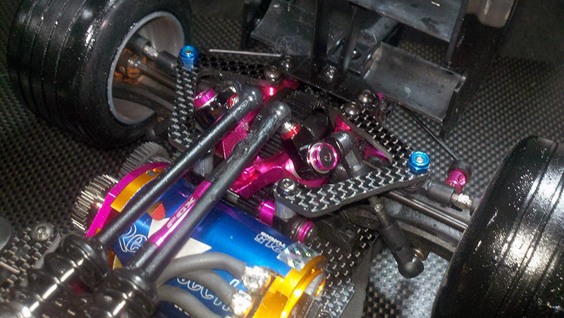 Upper Arms: Traxxas 4724X Rod ends on inside. Du-Bro 2321 Heavy Duty Ball Links on outside. 3Racing titanium 38mm and 35mm turnbuckles.