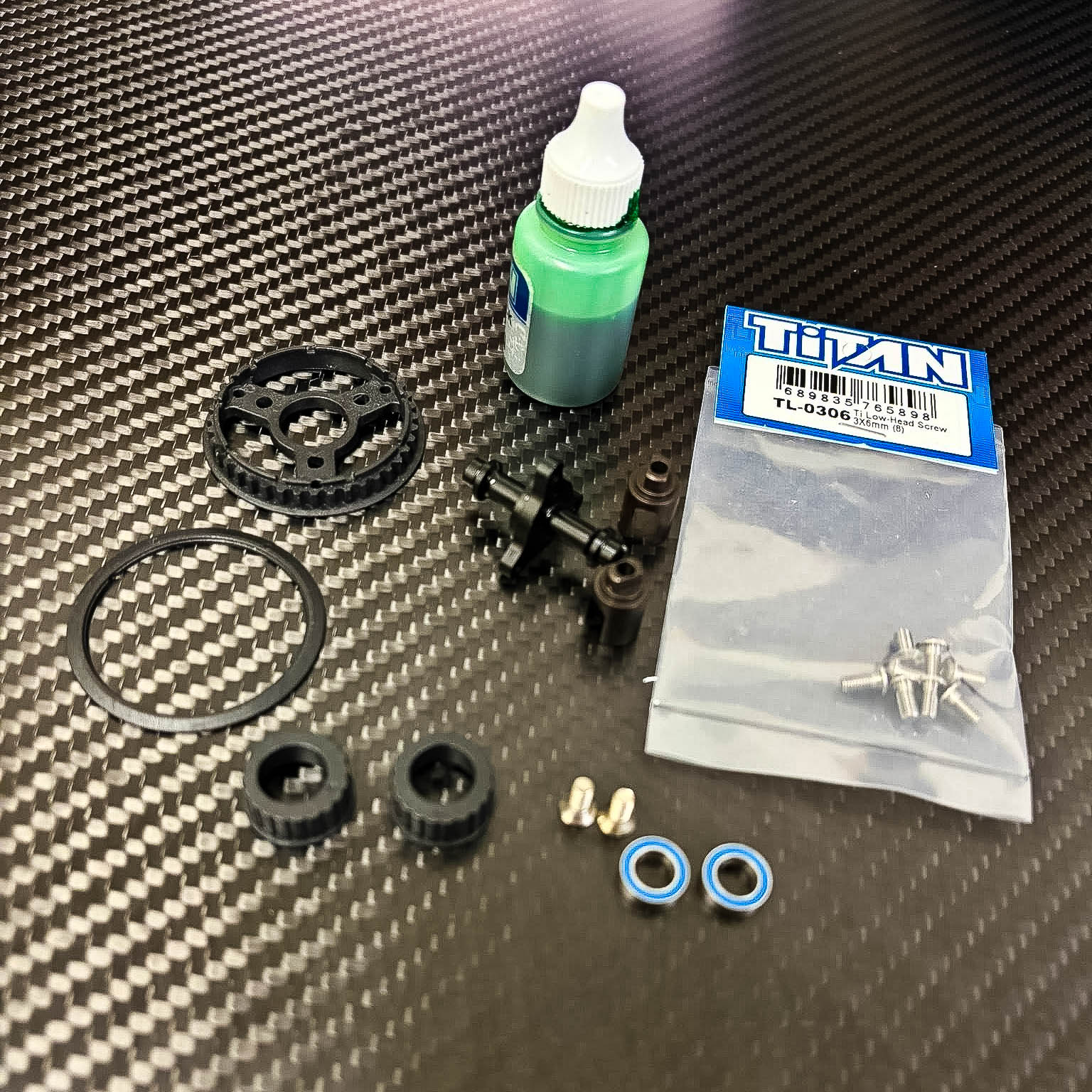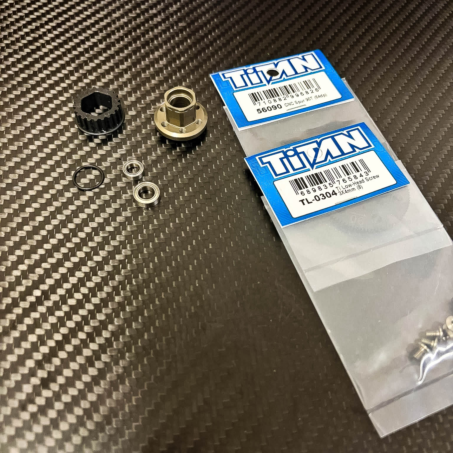 I use Team Titan screws to reduce weight, and I secure the spool outdrive screw with thread lock to ensure maximum reliability.