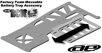 We conquered ... the 10L3 Oval racer's fears with the 10L3O Factory Team Chassis Kit! The battery tray shifts battery weight forward and back on the chassis in small increments. The tray's wider slots permit mounting the batteries closer to the centerline or further away.