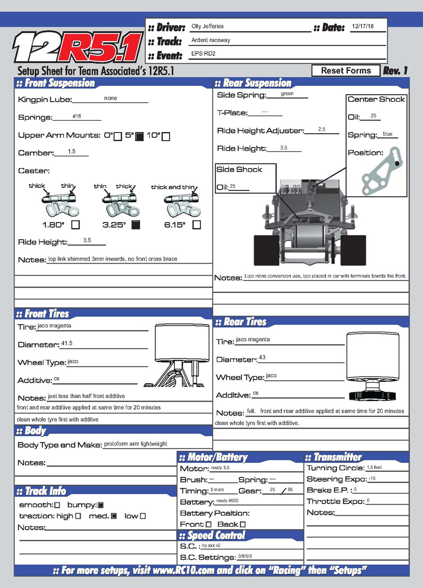 So a great end to the year for Olly, Reedy, LRP, and Team Associated with wins in both classes and a great showing from Zak and Ben.