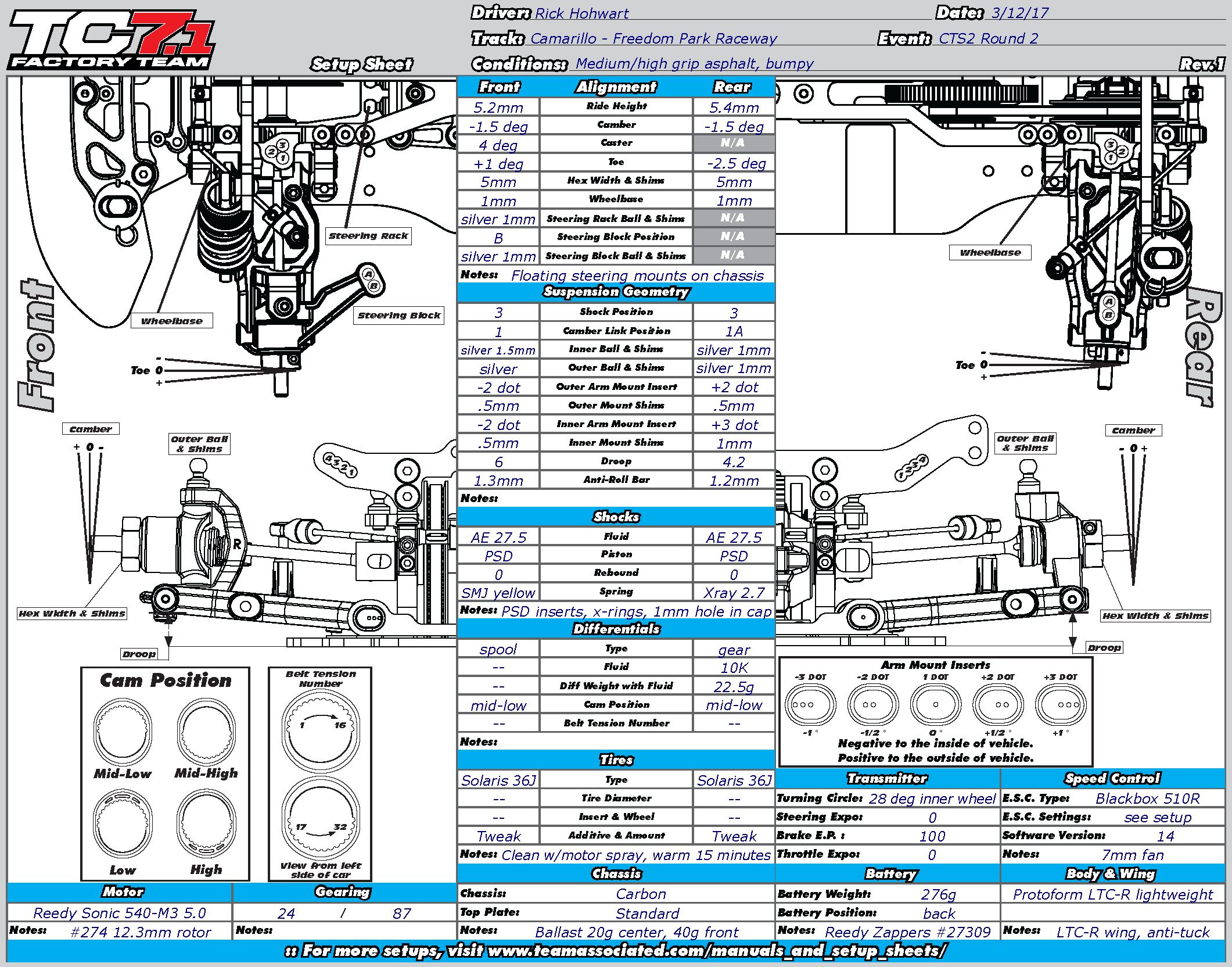 My setup from CTS Rd 2 has been posted online. This is essentially the same thing as what Randy ran and very close to what we (Rick setup) (including Cavalieri) used at the ROAR Nats last year.