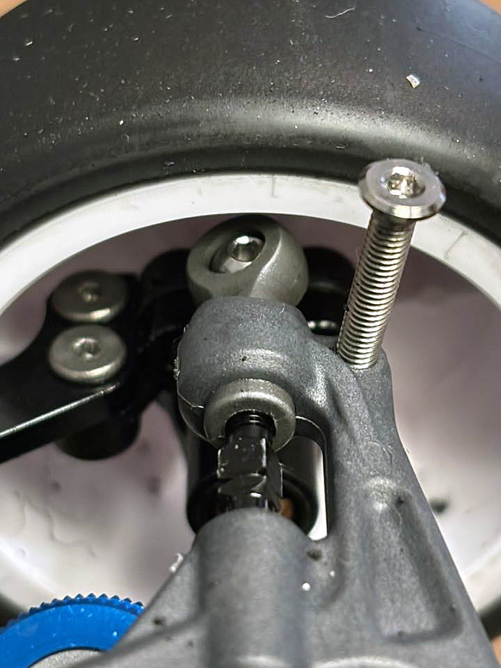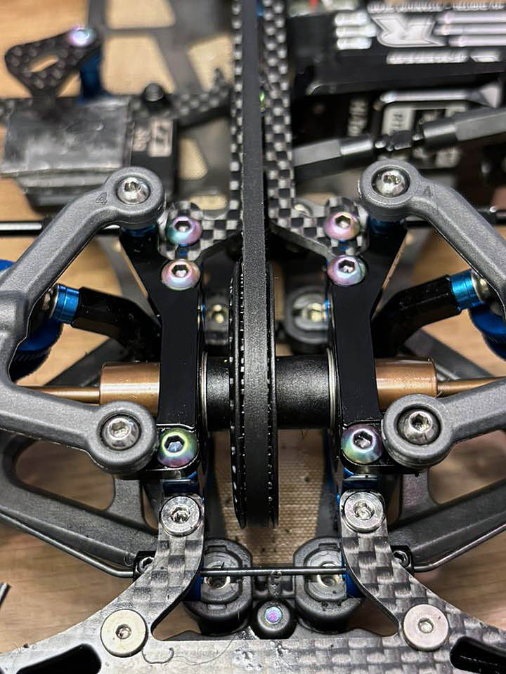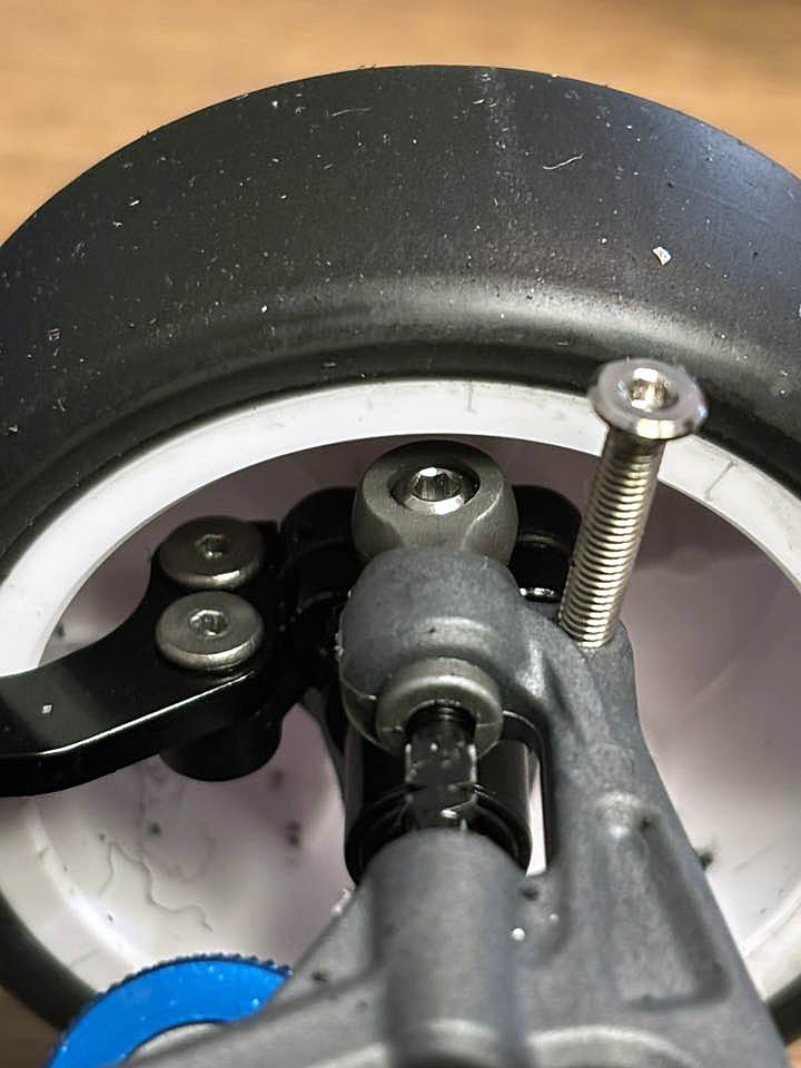 Make sure after setting cambers that your arm ends are in level! Make sure your upper arm ballcups are in level. Leaving them on one end or the other after setting cambers will cause binding in the supension. If ball cups are not in level it will bind the whole suspension.