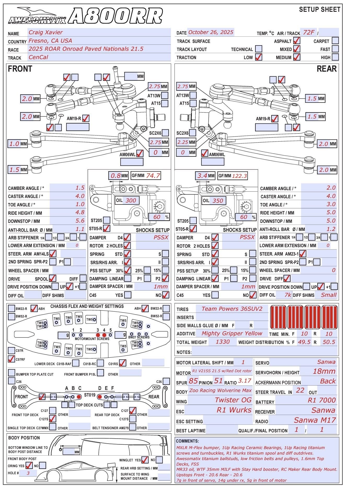 What a long, almost 2 weeks of racing back to back events. But I must admit it was a great time in New York and then straight out to California for the ROAR 2025 Onroad Nationals at CenCal Speedway Fresno. This Paved Nationals was by far the most difficult conditions I think we've had to deal with…from grip changing drastically with changes in temperature to quite inconsistent tires. I'm never one to complain about tires but with this handout tire and whatever batches were being distributed, on track performance was almost a guess each time you hit the track and often enough that guess was wrong.