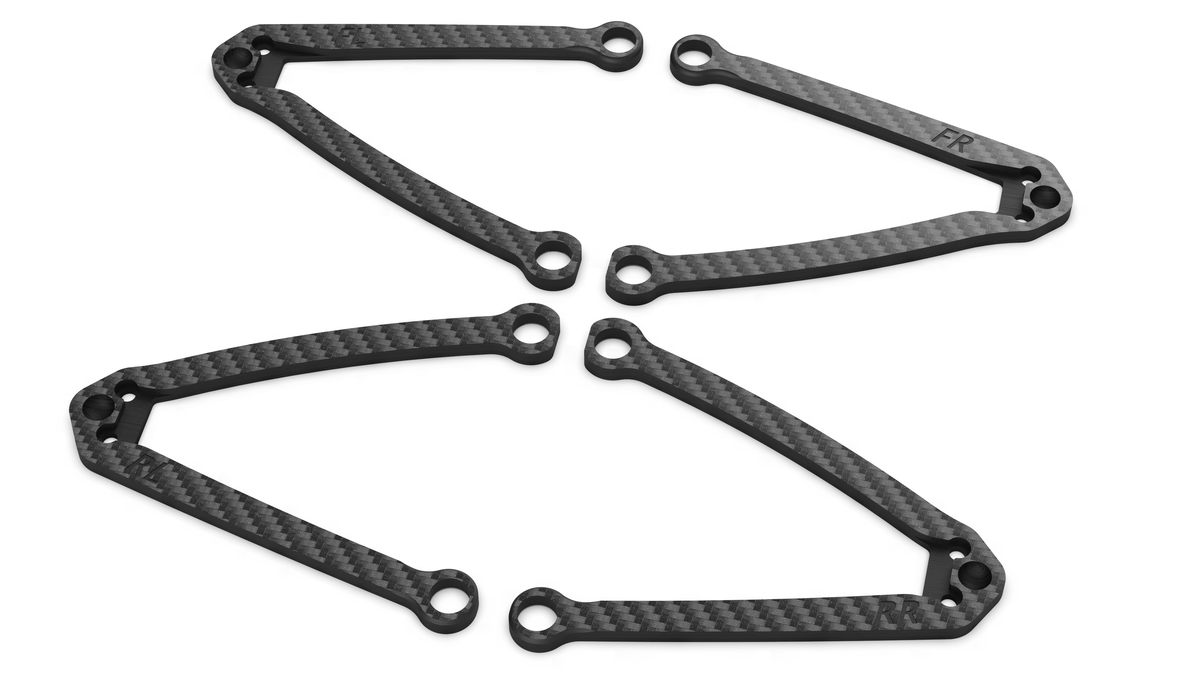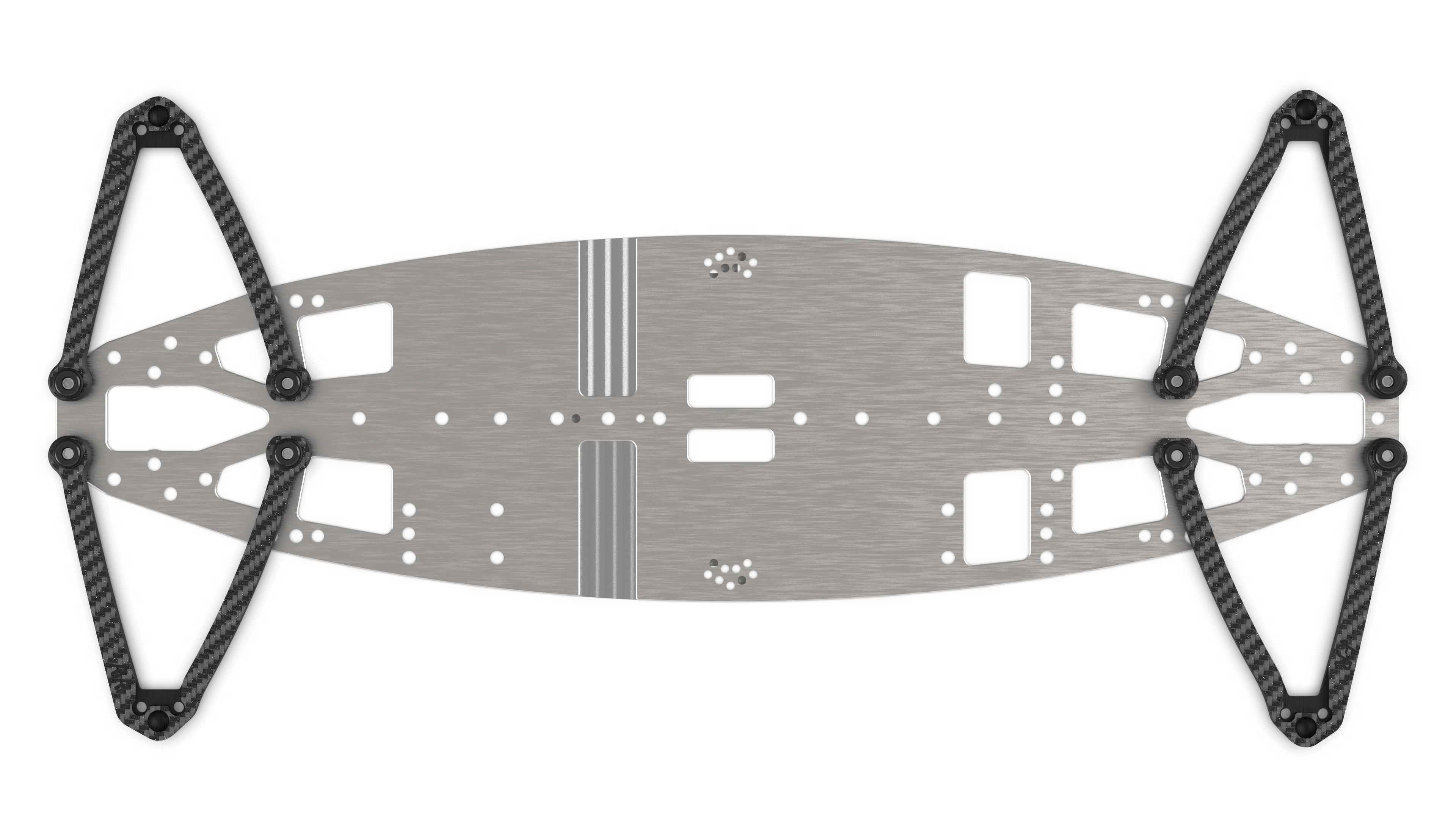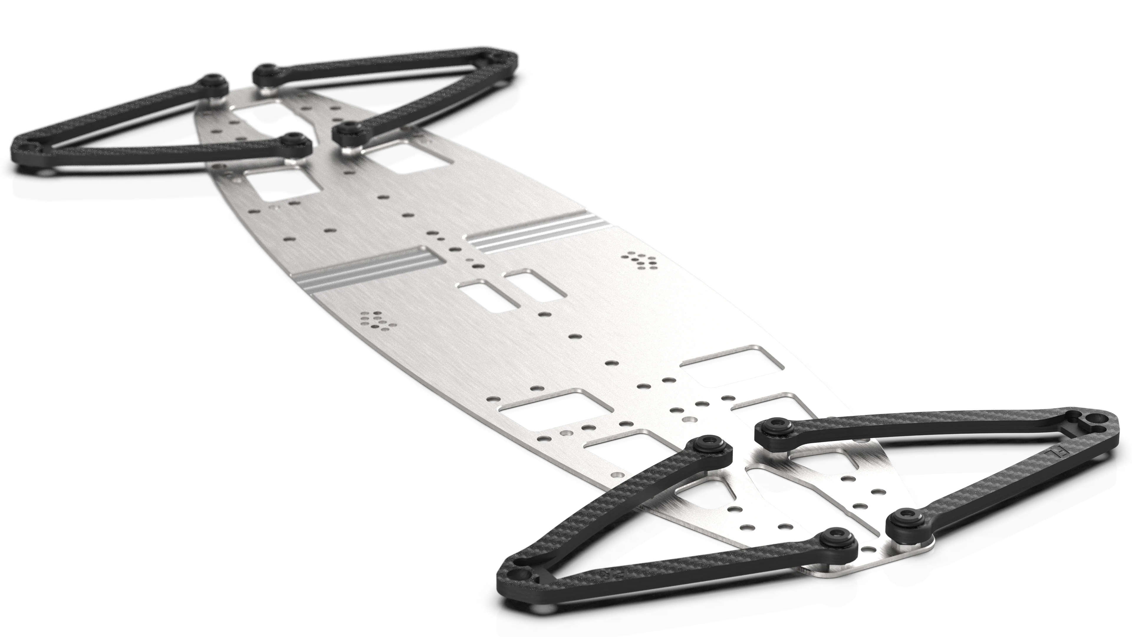 Premium carbon fiber suspension arms with redesigned geometry, a precision-cut stainless steel chassis, and all necessary hardware with additional spare fasteners included so you're covered at the track.