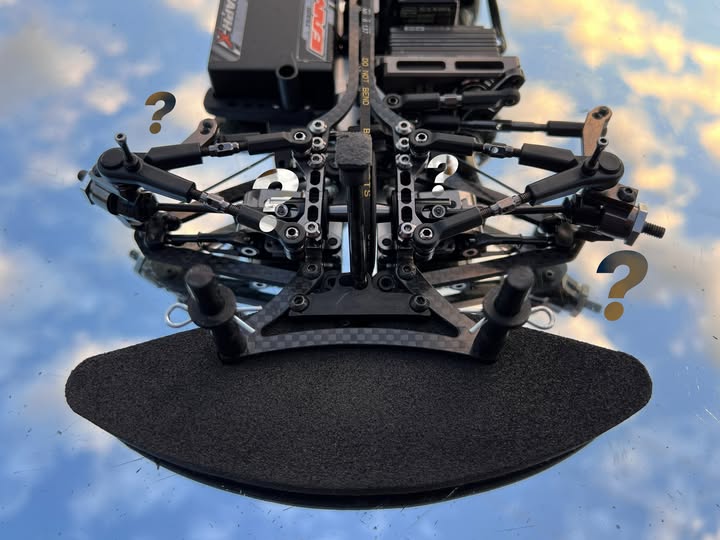 - Experiment with different roll center heights. This one is the most time consuming but is necessary if you want to get 100% of the grip possible. Once you find a balance front to rear that you're happy with, to further optimize, you can try shifting everything up or down by 1mm. That way, you will find if a high roll center philosophy better suits your conditions or driving style. One rule: whenever you move 1mm under the lower arm, mirror it on the inner side of the upper arm. That way you're only changing roll center height, not camber gain.