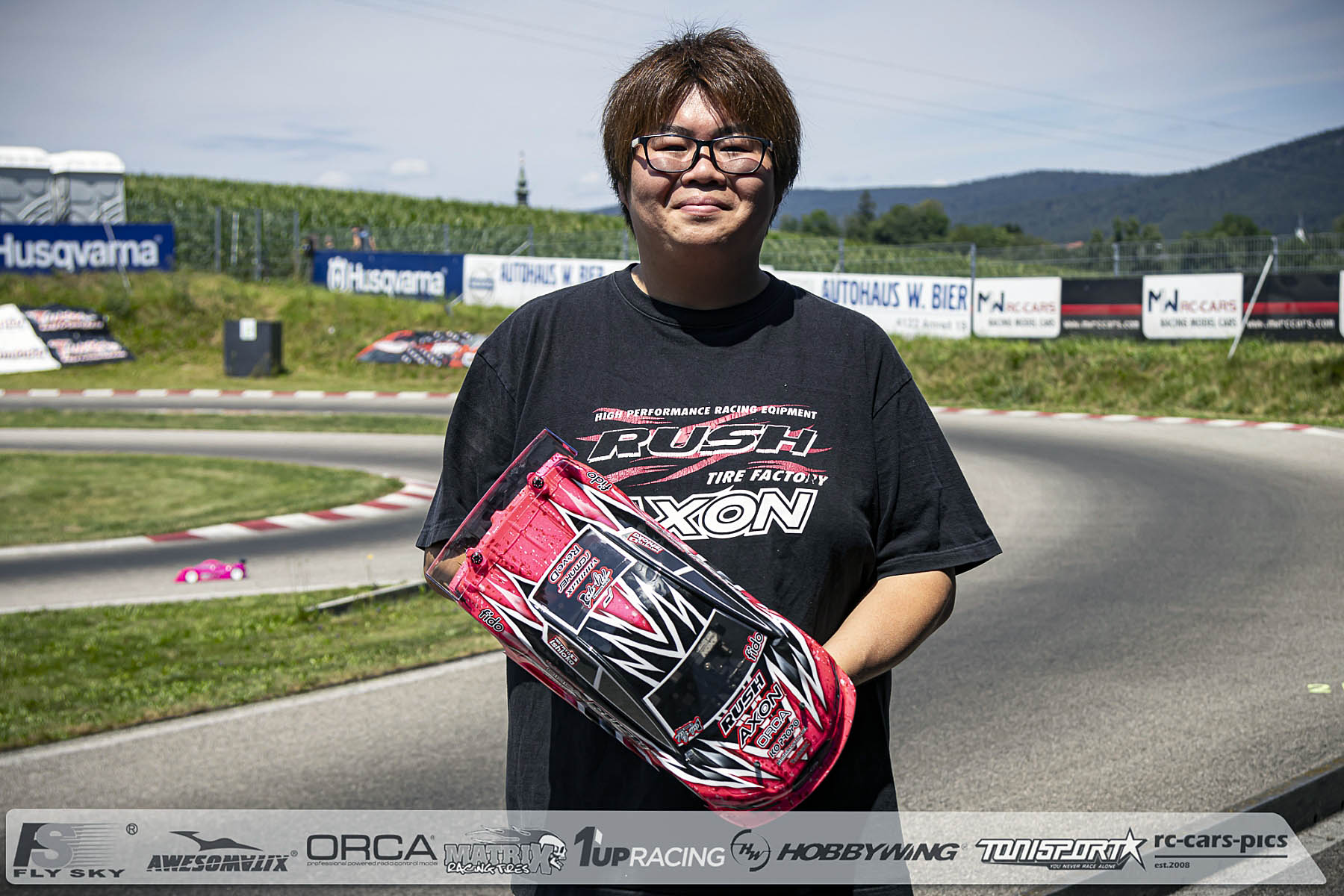 Axon driver Hayato Ishioka is here at ETS RD2 in Aigen. He made the trip from Japan together with his team mate Akio Sobue, and Axon boss Hidetoshi Mitsusada. After Sobue was on his own during RD1 in Apeldoorn, Ishioka is the second top driver for the Axon team this weekend. The team has brought some new AXON parts like a new lower shock tower, new short shocks, carbon steering arms, a rear aluminum T-brace, and alu body stoppers. All parts are mounted in Hayato's TC10/3 and he is really excited for the weekend with the TC10/3 on track in Aigen.