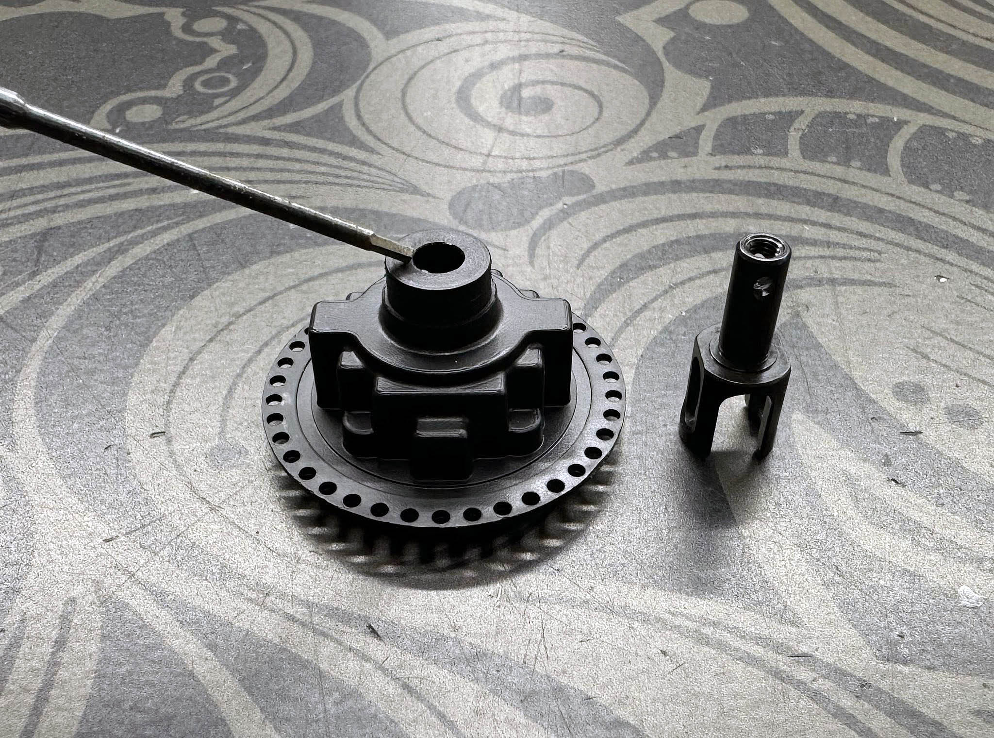 I think there are people who think it's a bit harsh when putting the differential cup straight into the case. The differential case structurally makes the area near the differential cup entrance slightly narrower, making it a bit harsh. However, if you put the differential cup in the back, the clearance is just right! So just put it together. This time the differential has improved grip strength with further optimizing backlash etc. |