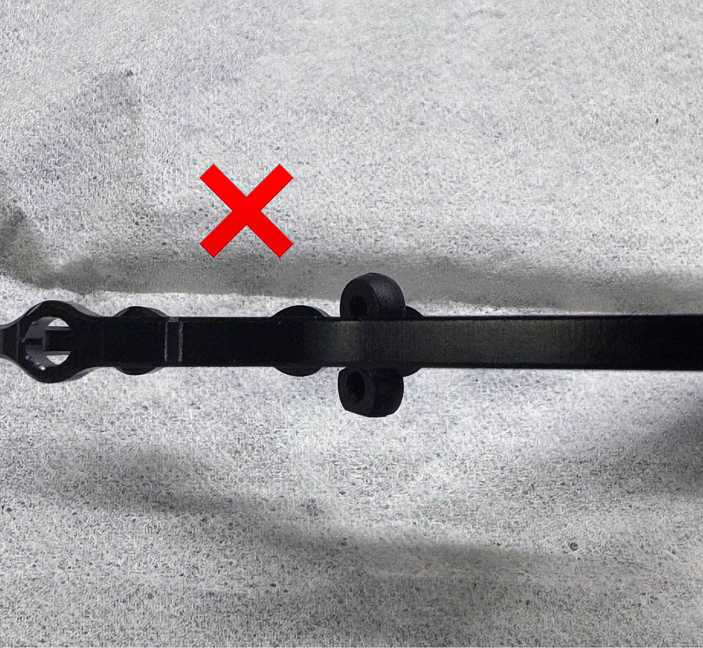 X - There is a pattern in which the stubby ball protrudes on the top side of the sass arm as in the picture. This will be a mistake.