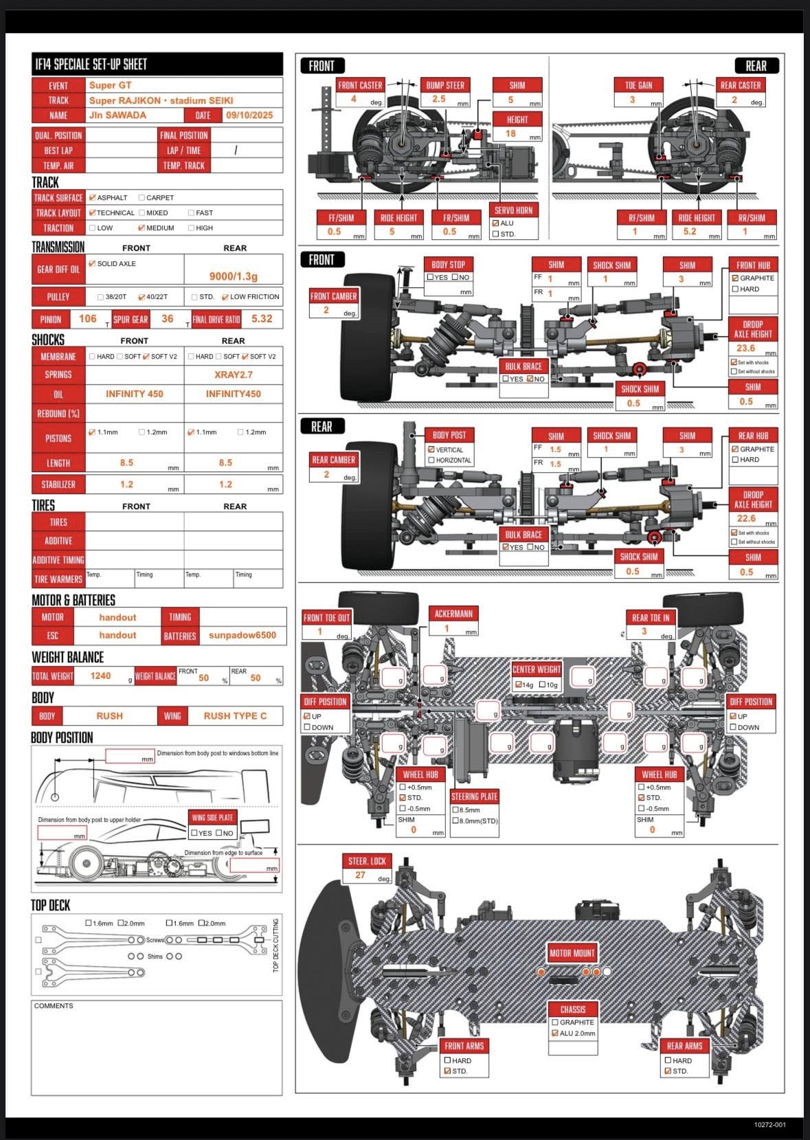 +0.5 the camber if you feel like it won't bend, +0.5 the rear will break against the throttle, +0.5 on the caster and a bit of alignment was no problem!