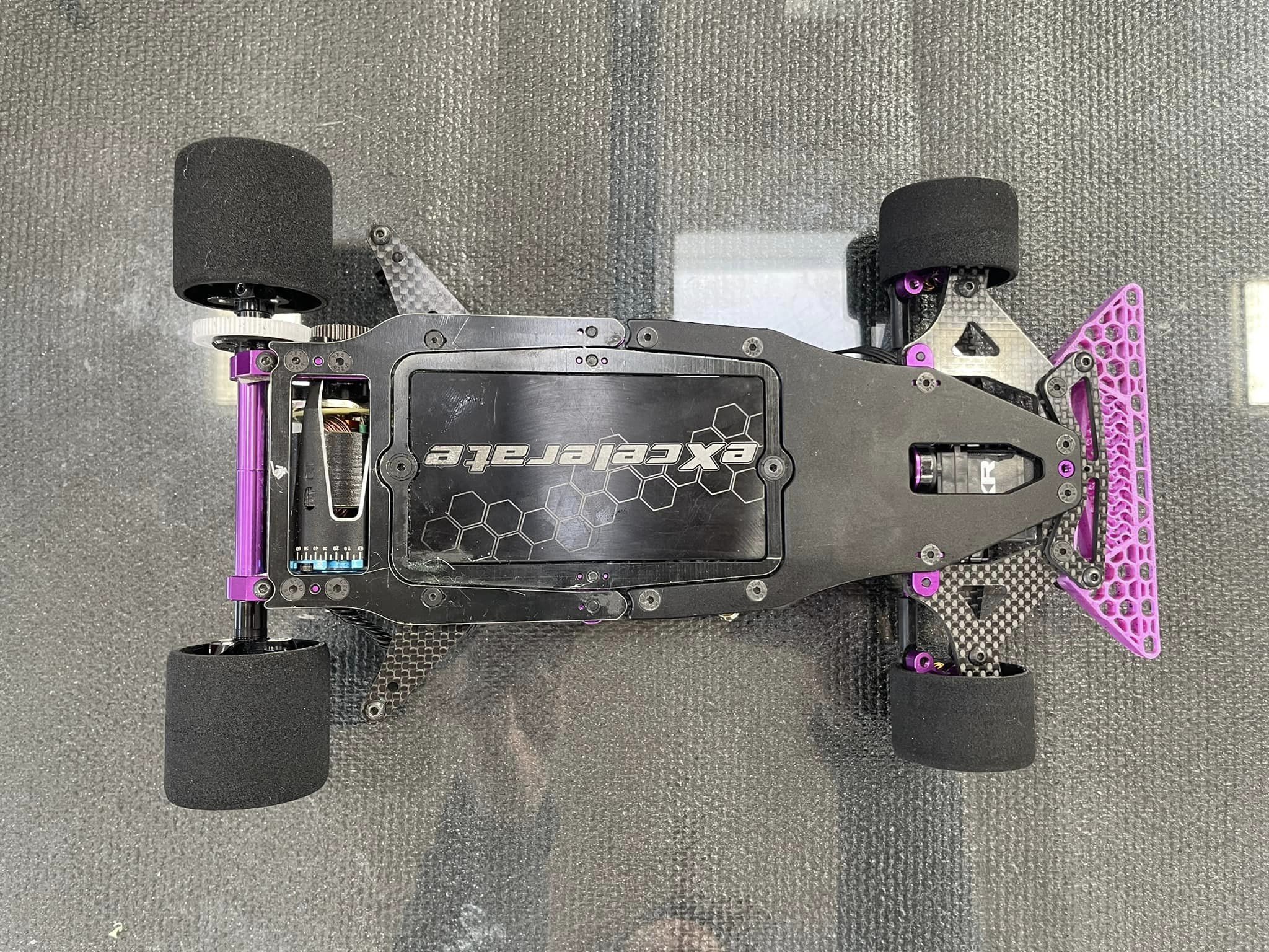 Car: ExCelerate Prodigy 12Motor: XfactorSpeed Controller: Hobbywing XR10 Pro 1SBattery: EAM 7500Servo: Sanwa SXRRadio: Sanwa Exzes ZZTyres: ContactBodyshell: SuperRad