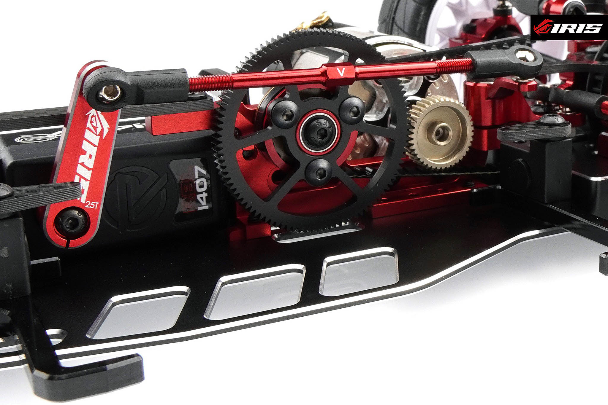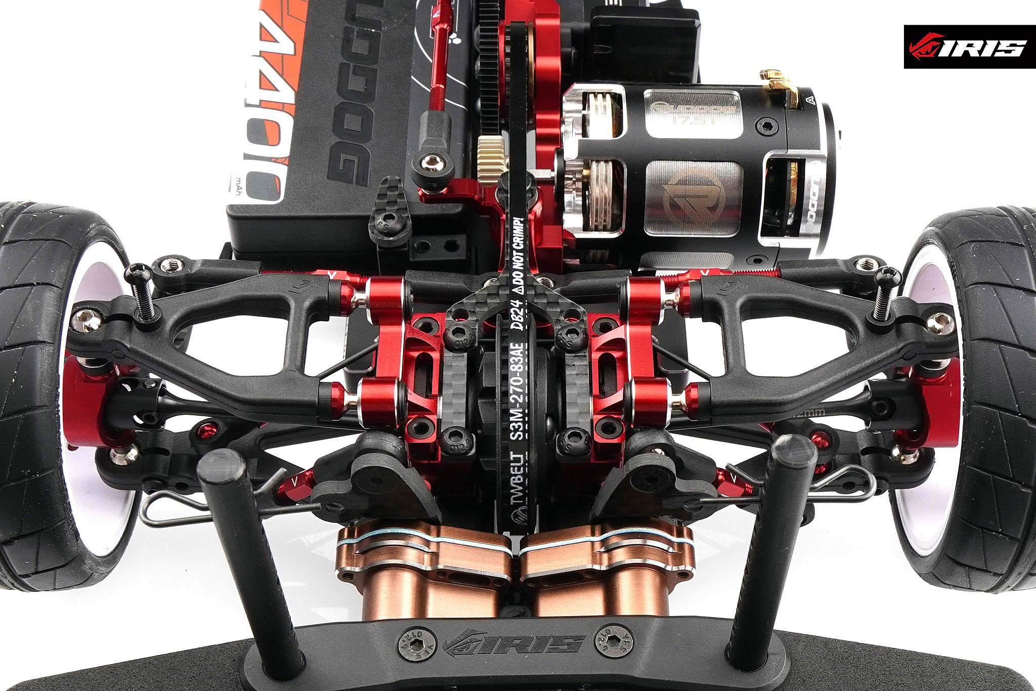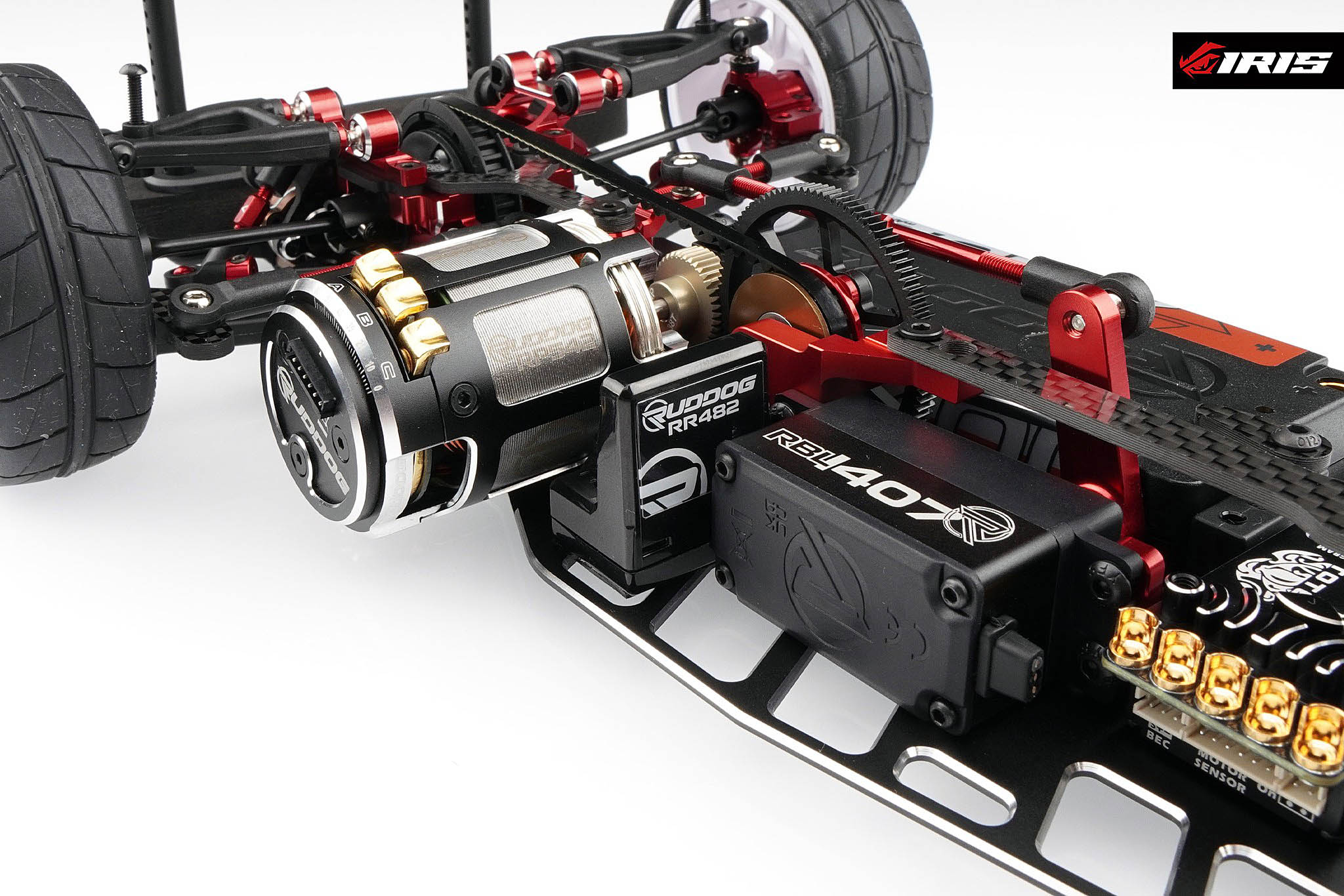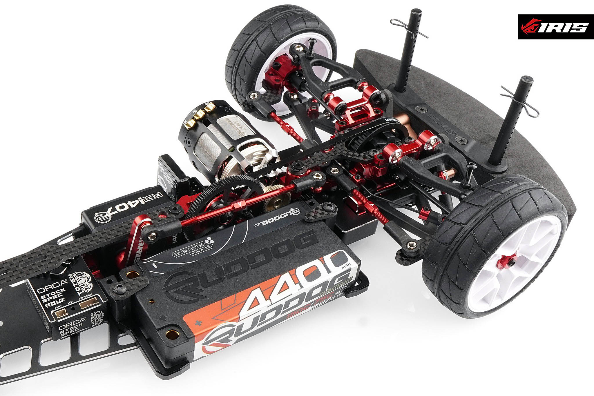 The Iris ONE.05 FWD touring car is based on the ONE.05 touring car, the second generation competition car kit designed and developed entirely by RUDDOG. It features a forward mounted motor and battery for optimised weight balance and performance. The central single belt drive has a machined aluminium pulley and is highly efficient for the low power 17.5T and 21.5T motors. It also has FWD-specific steering geometry to meet the needs of the FWD class, while still sharing the majority of components with the Iris ONE.05 touring car for easy and simple parts management. It also incorporates all the improvements we made to the ONE.05, such as an updated shock linkage and a carbon fibre rocker arm design that is more progressive and reduces roll when cornering. New chassis locating pins on the bulkheads, motor mount and damper cases not only improve durability, but have also allowed us to redesign these parts and make them lighter, saving over 25g in total. Many unique details, such as an optional direct mount aluminium fan, have been incorporated into the design of the Iris ONE.05 to give you an edge over the competition.