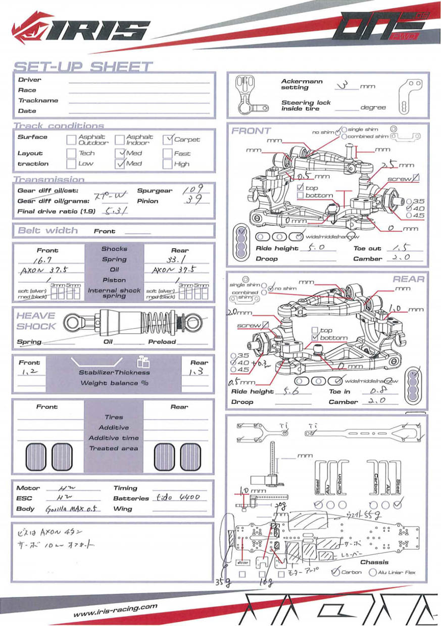 On that day, the road surface didn't turn very well, so I changed the rear car height from 5.4 to 5.6.