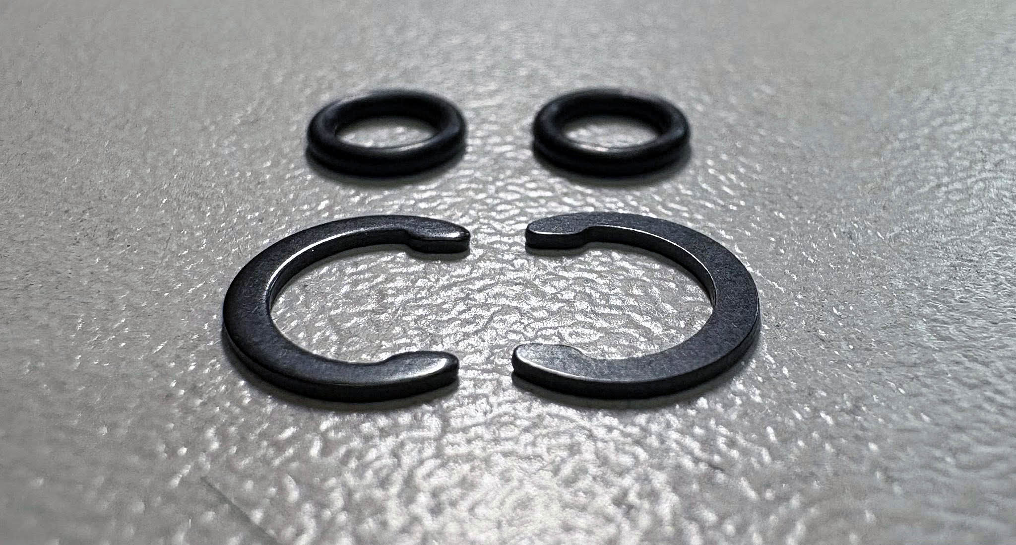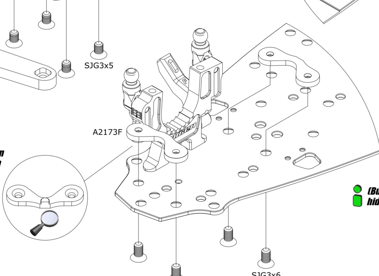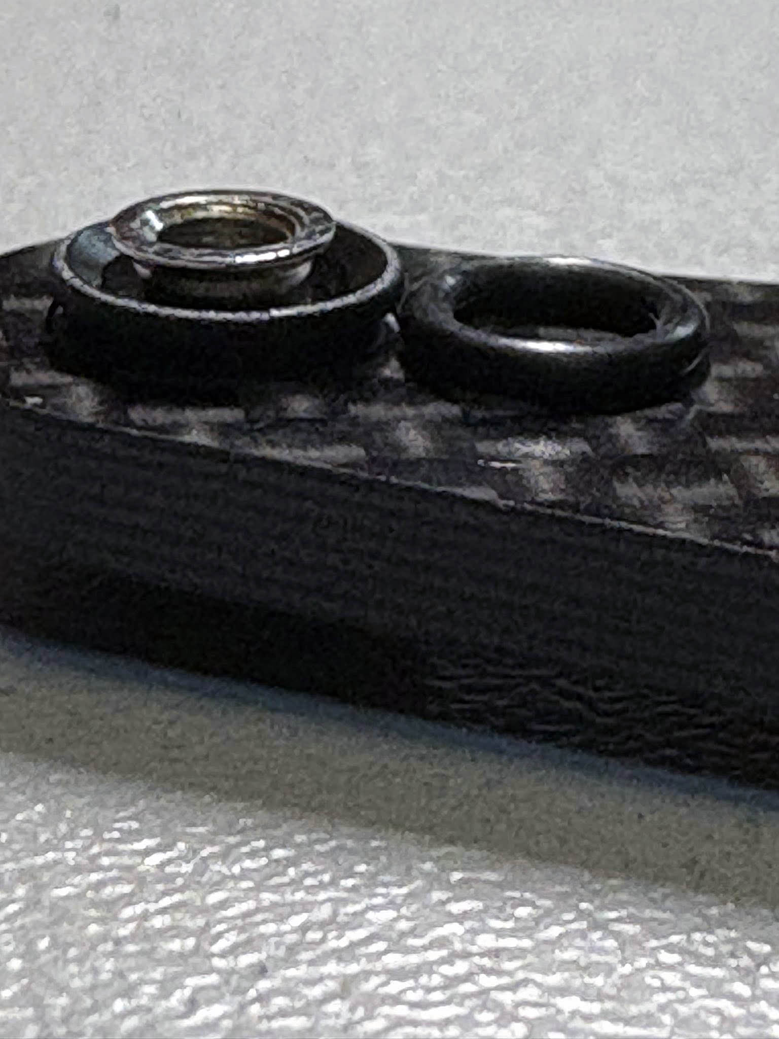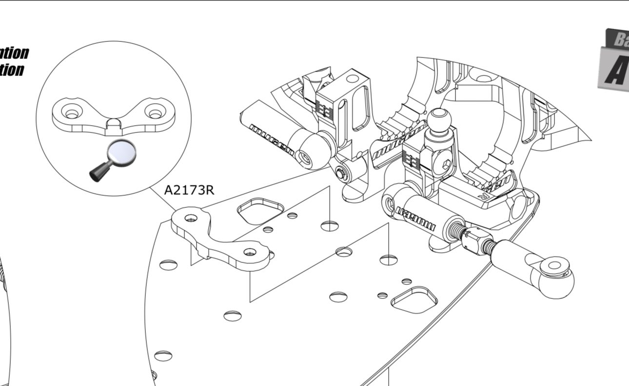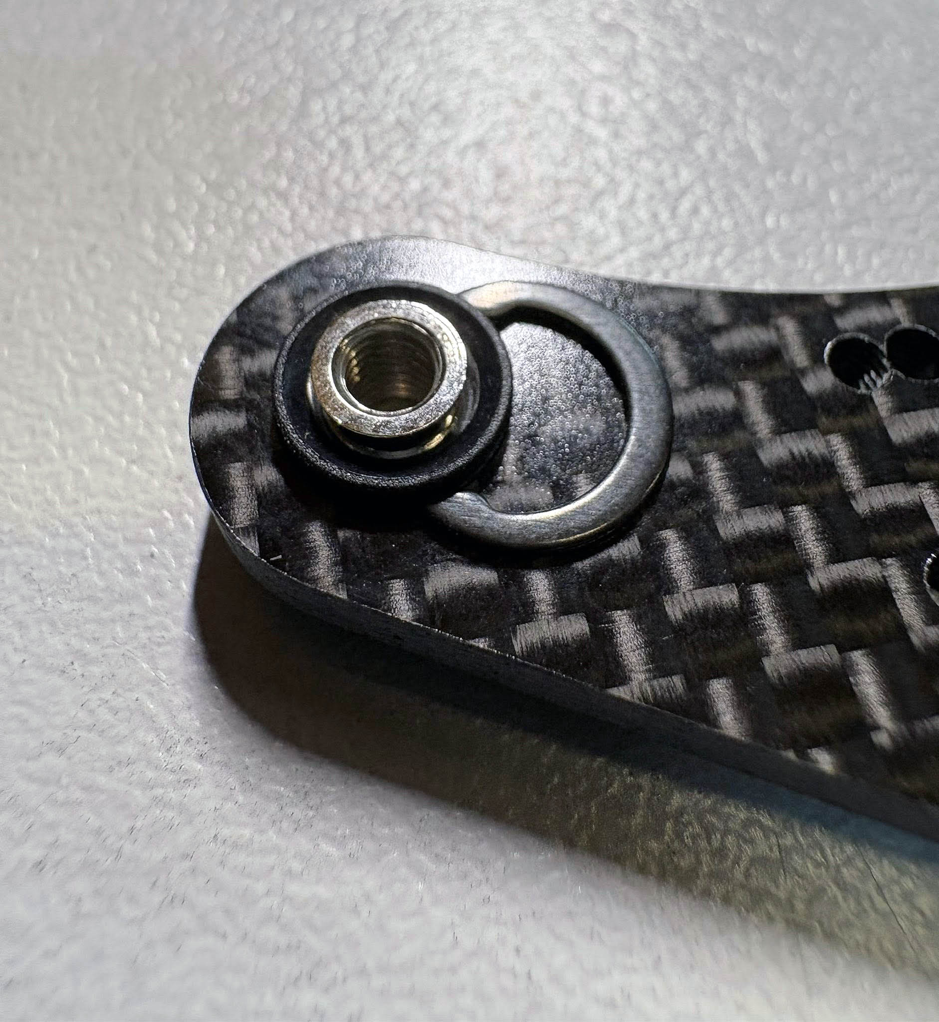 Pictured below are C-Clips included in the kit part #CTW-28. They are used to mount #A2174C to the lower suspension arms. Please note the C-Clip on the right has a flatter surface than the left which is more rounded. I recommend to mount the flat surface towards the carbon suspension arm for a better and secure fit pictured below. Flip the C-Clip to find the flat surface.