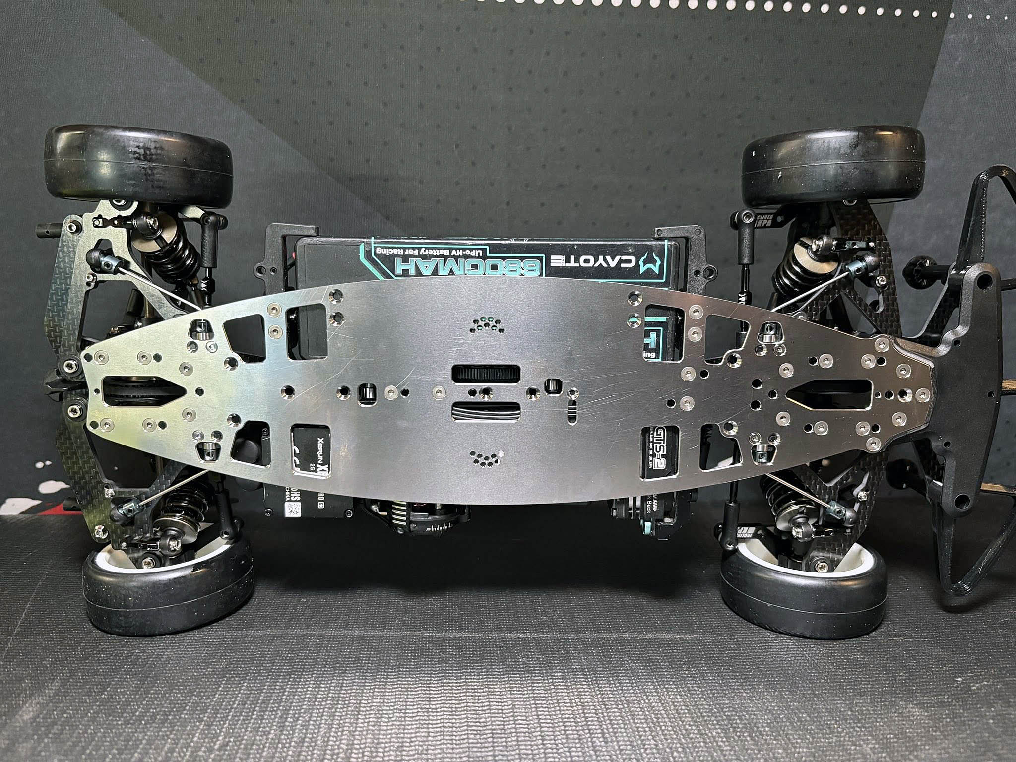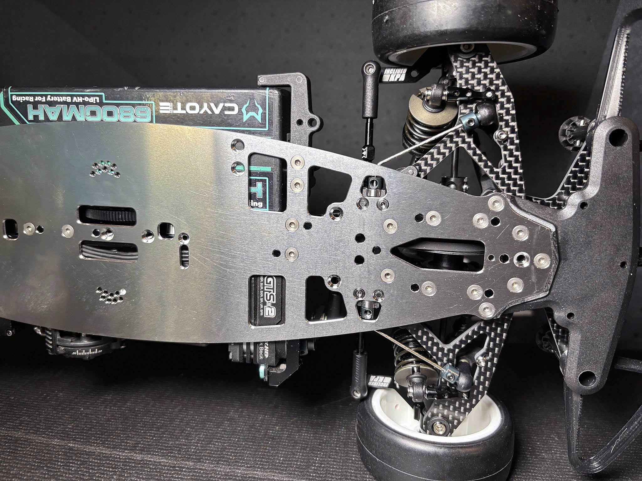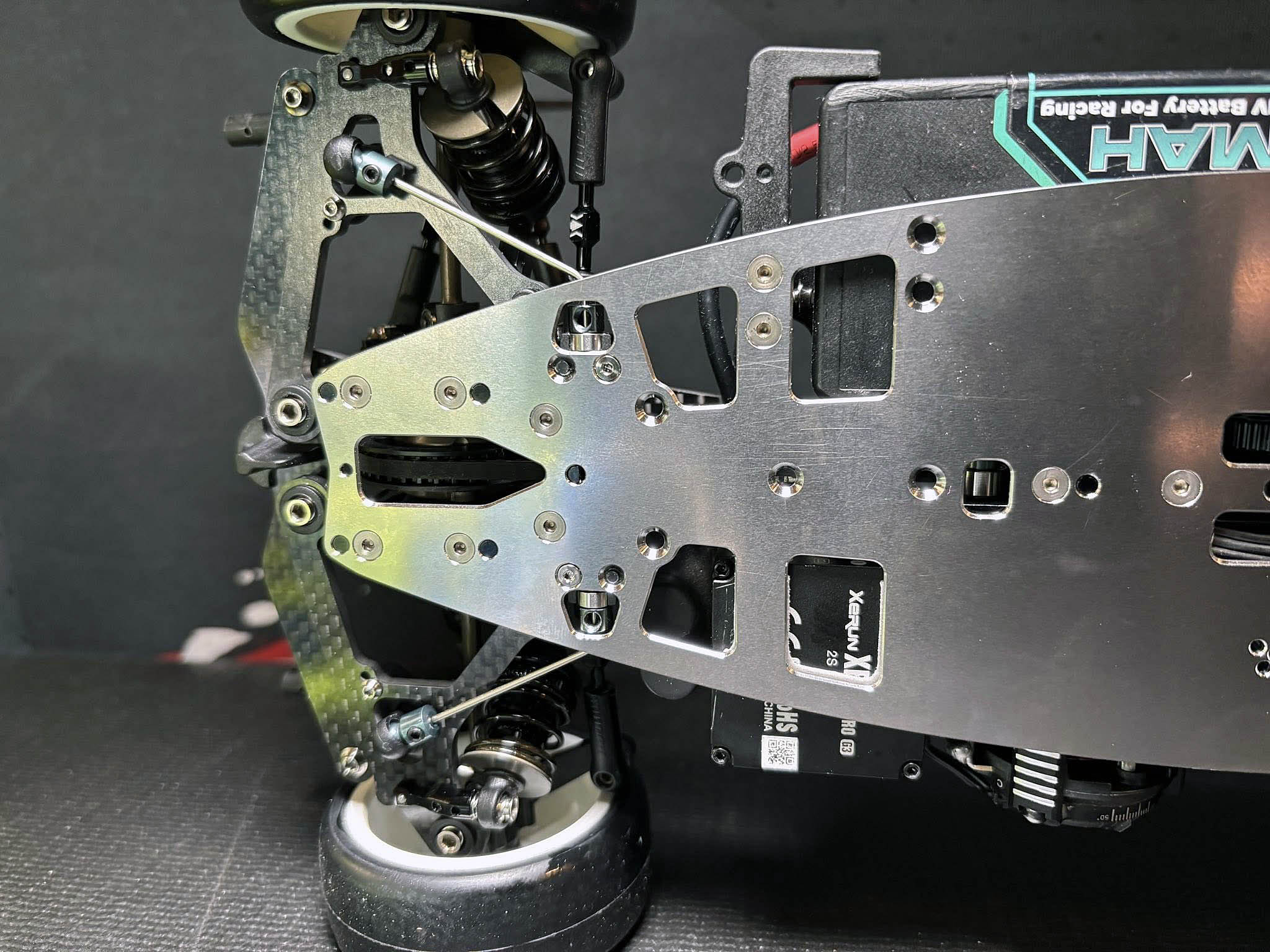 I just finished to build my Mugen MTC-3 onto the 1.2mm thin and 145g heavy steel chassis from WEi RC.