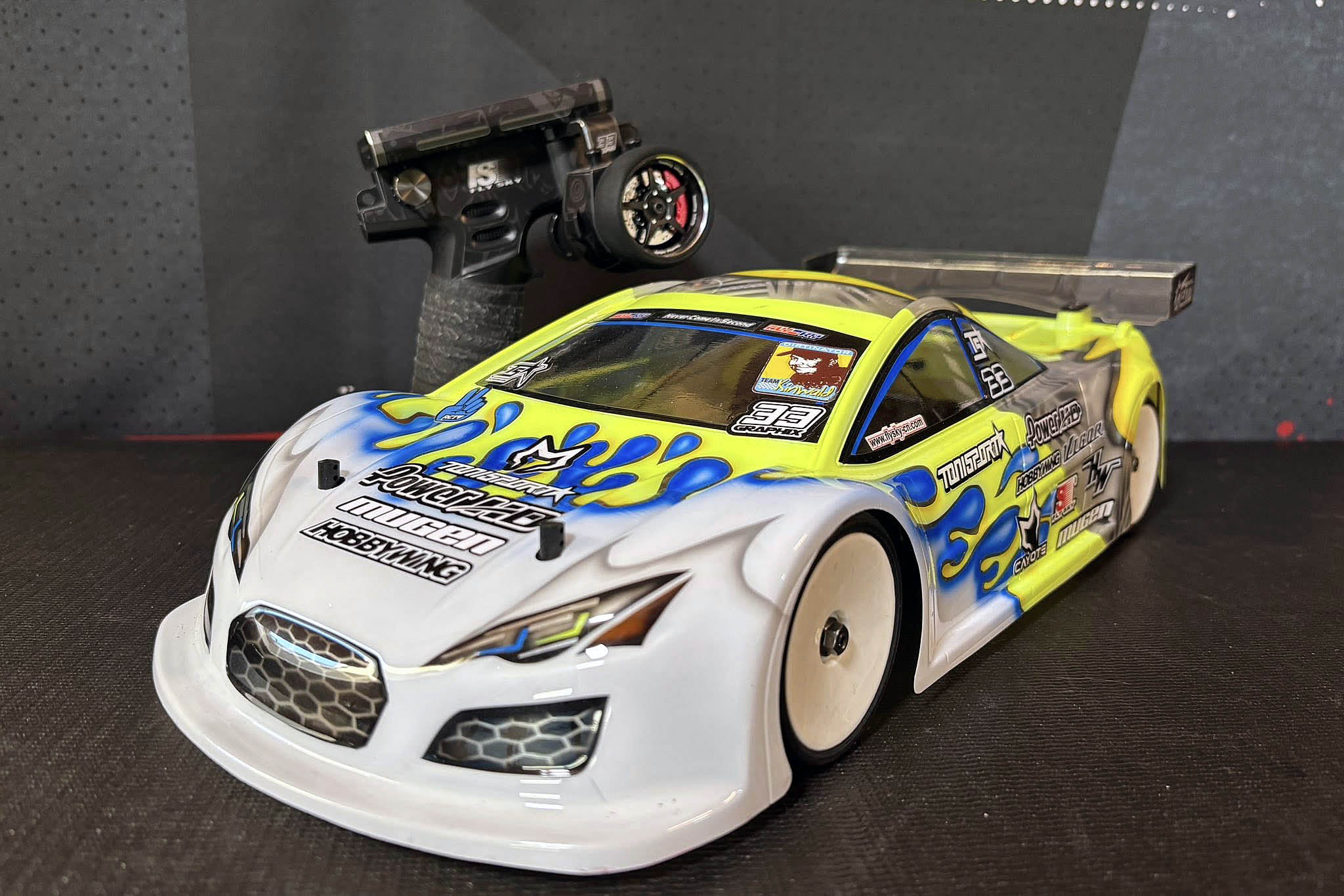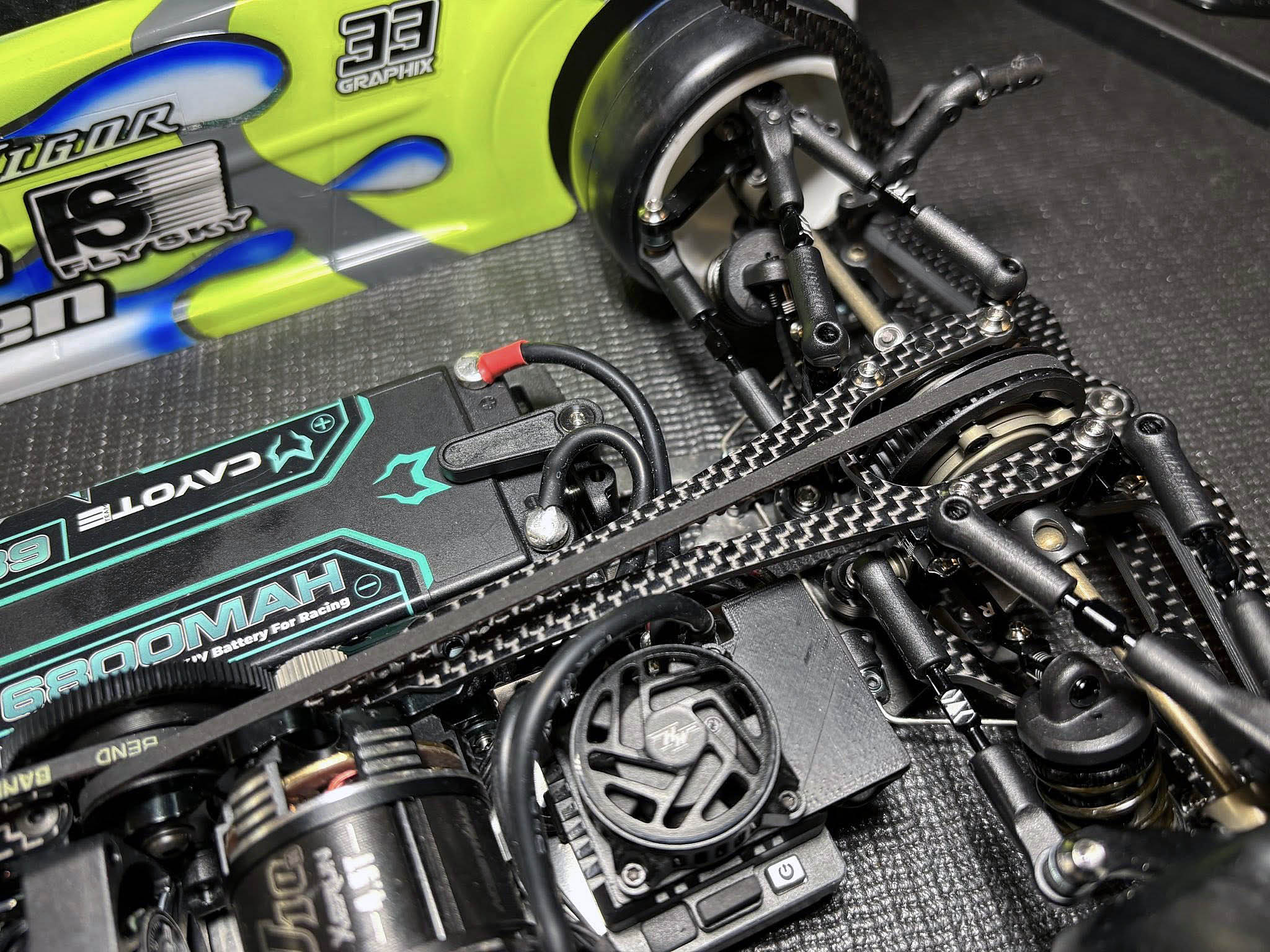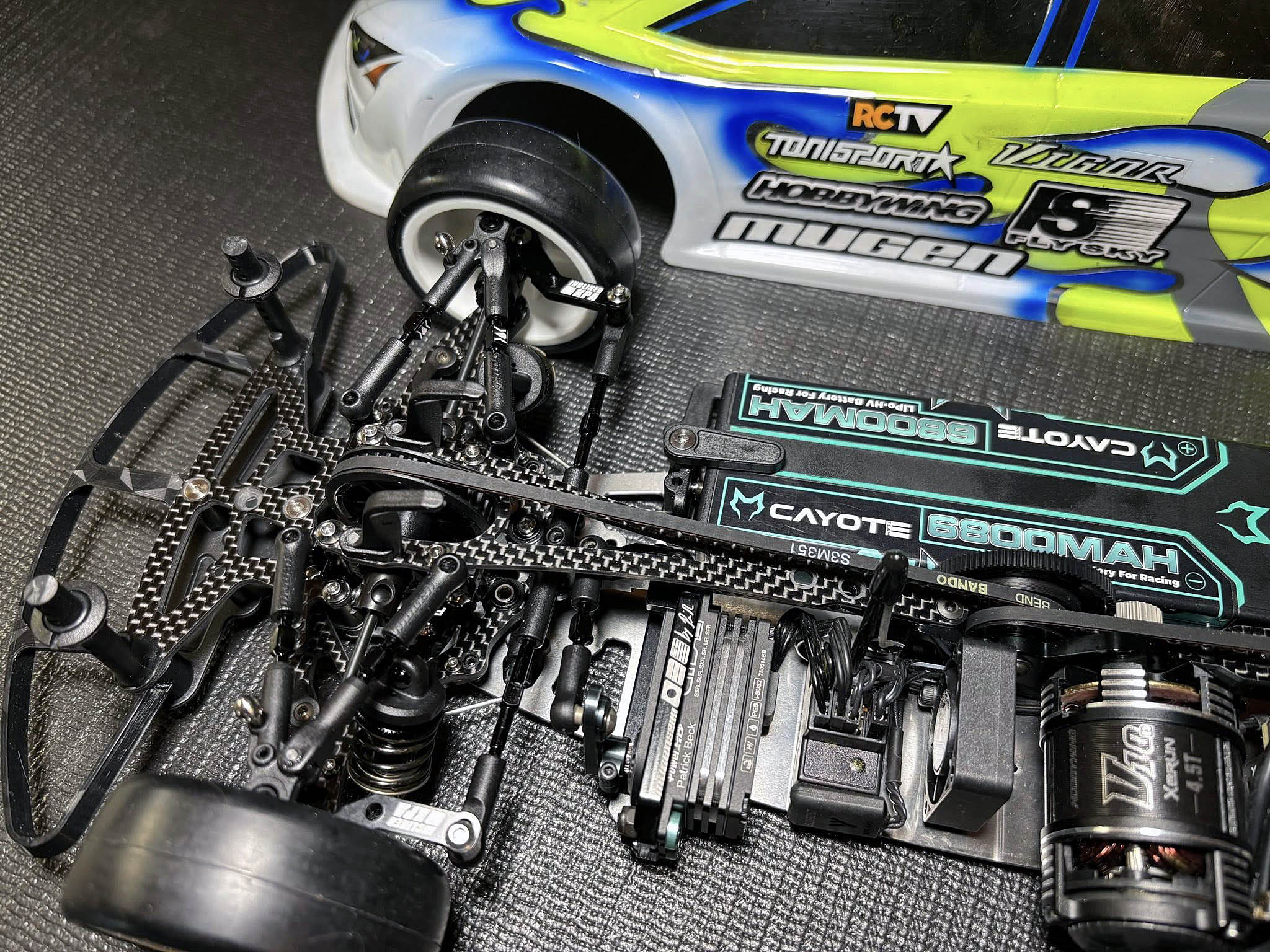 I just finished to build my Mugen MTC-3 onto the 1.2mm thin and 145g heavy steel chassis from WEi RC.