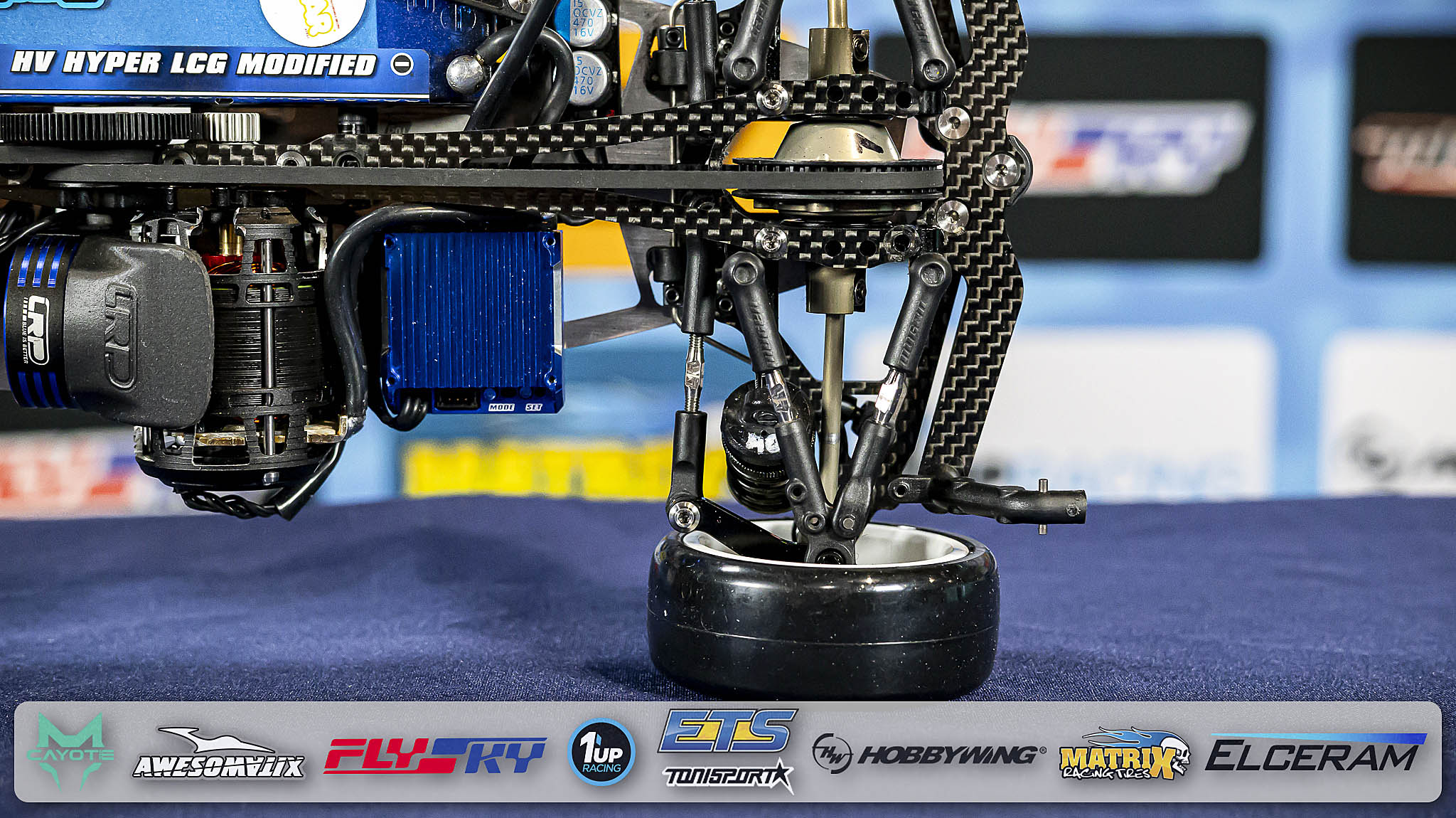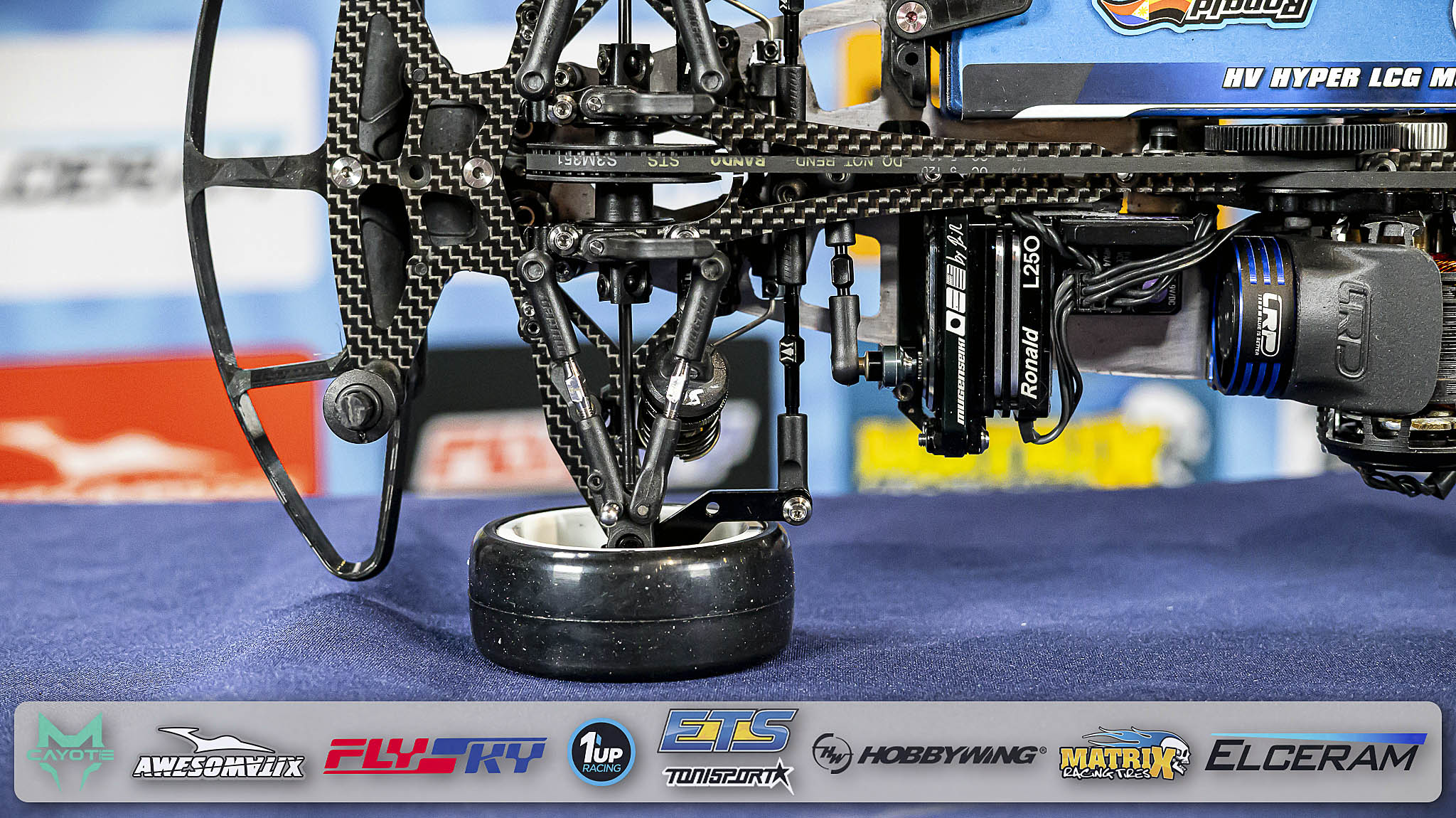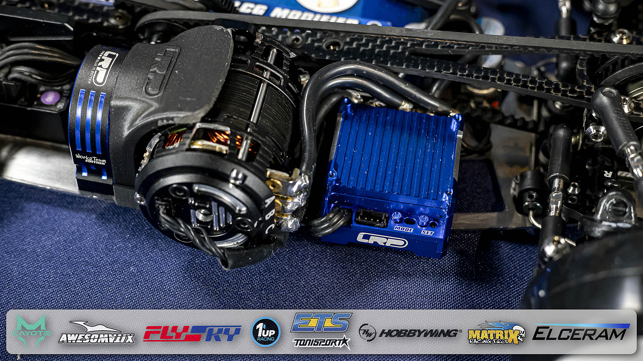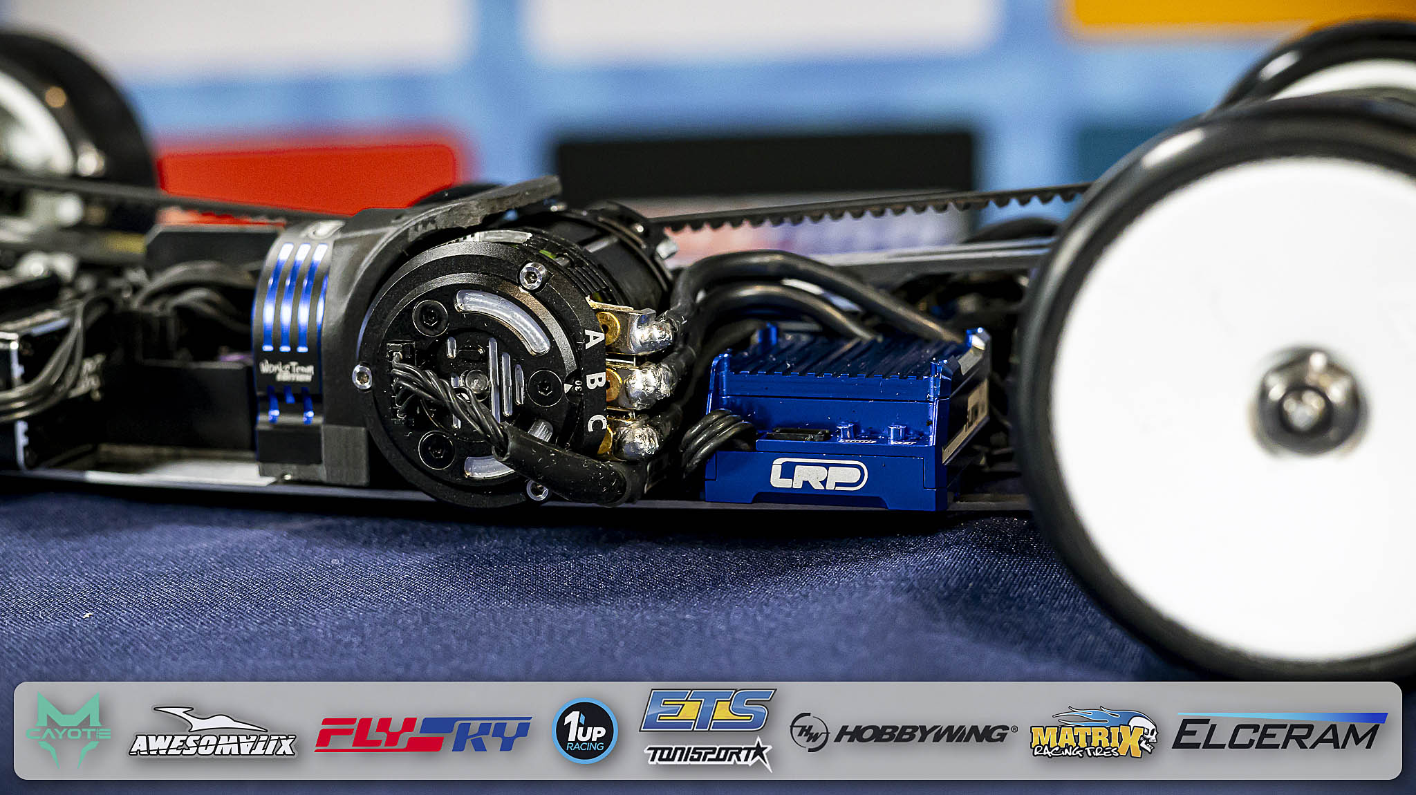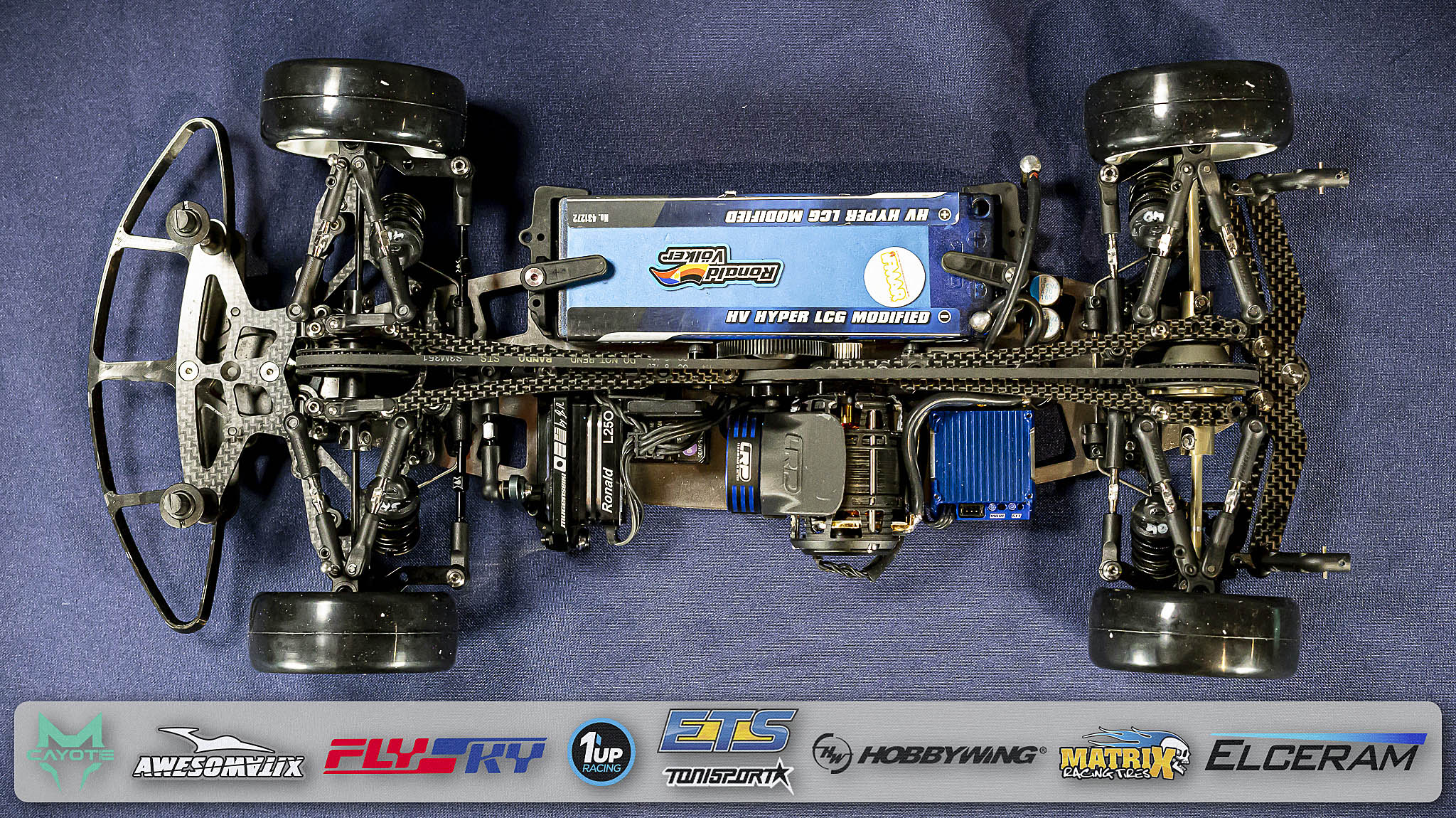 Since almost 20 years, Völker is powered by the “Blue is Better” brand LRP. This weekend, he is debuting a new LRP X23 Modified Motor which will become available in 2026 together with the also new FlowX 2 speed controller which he can use without a cooling fan (on carpet tracks). Ronald`s battery of choice is a powerful LRP 5200mAh full-length stick pack with a very low centre of gravity (LRP battery weight plate underneath).