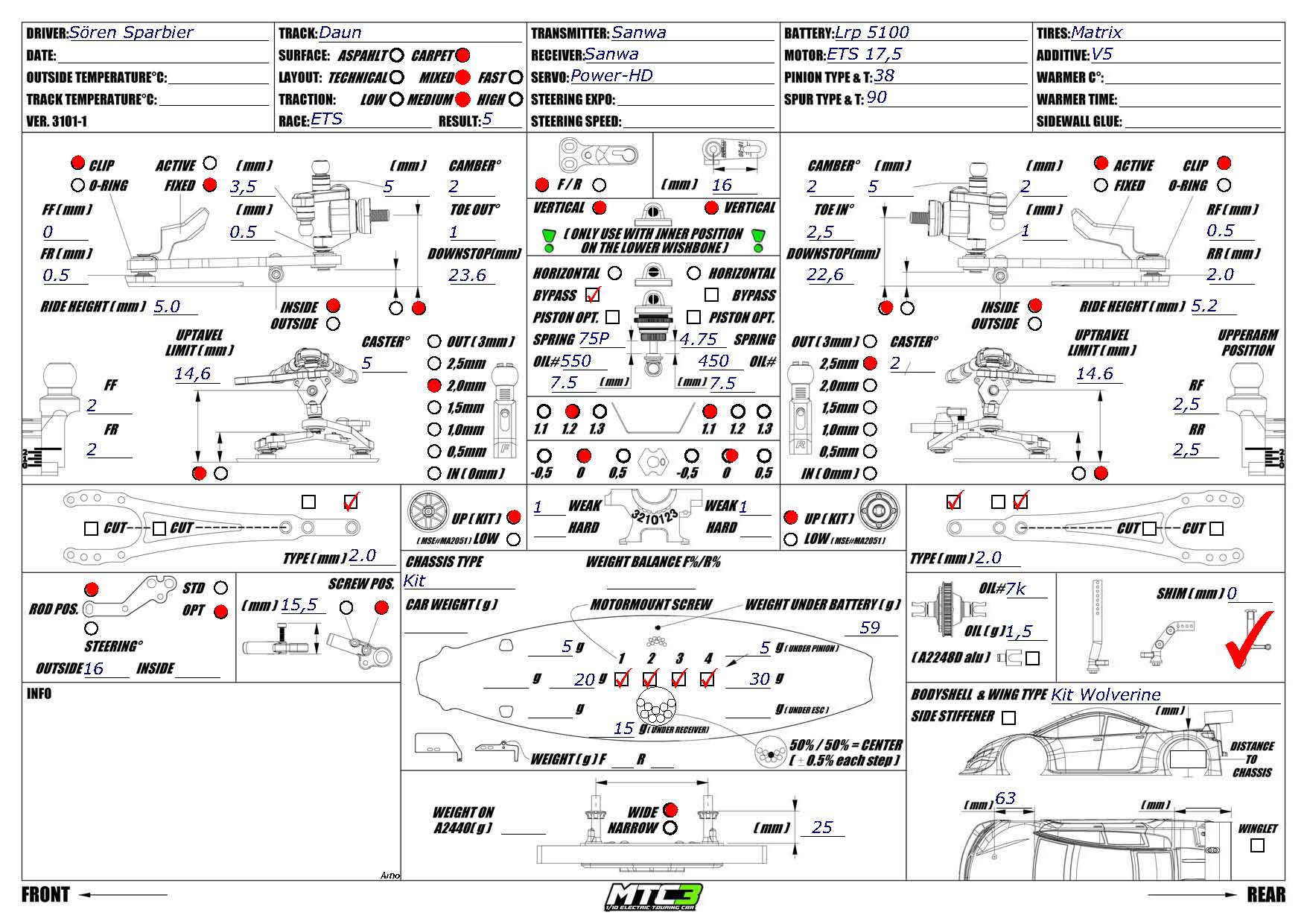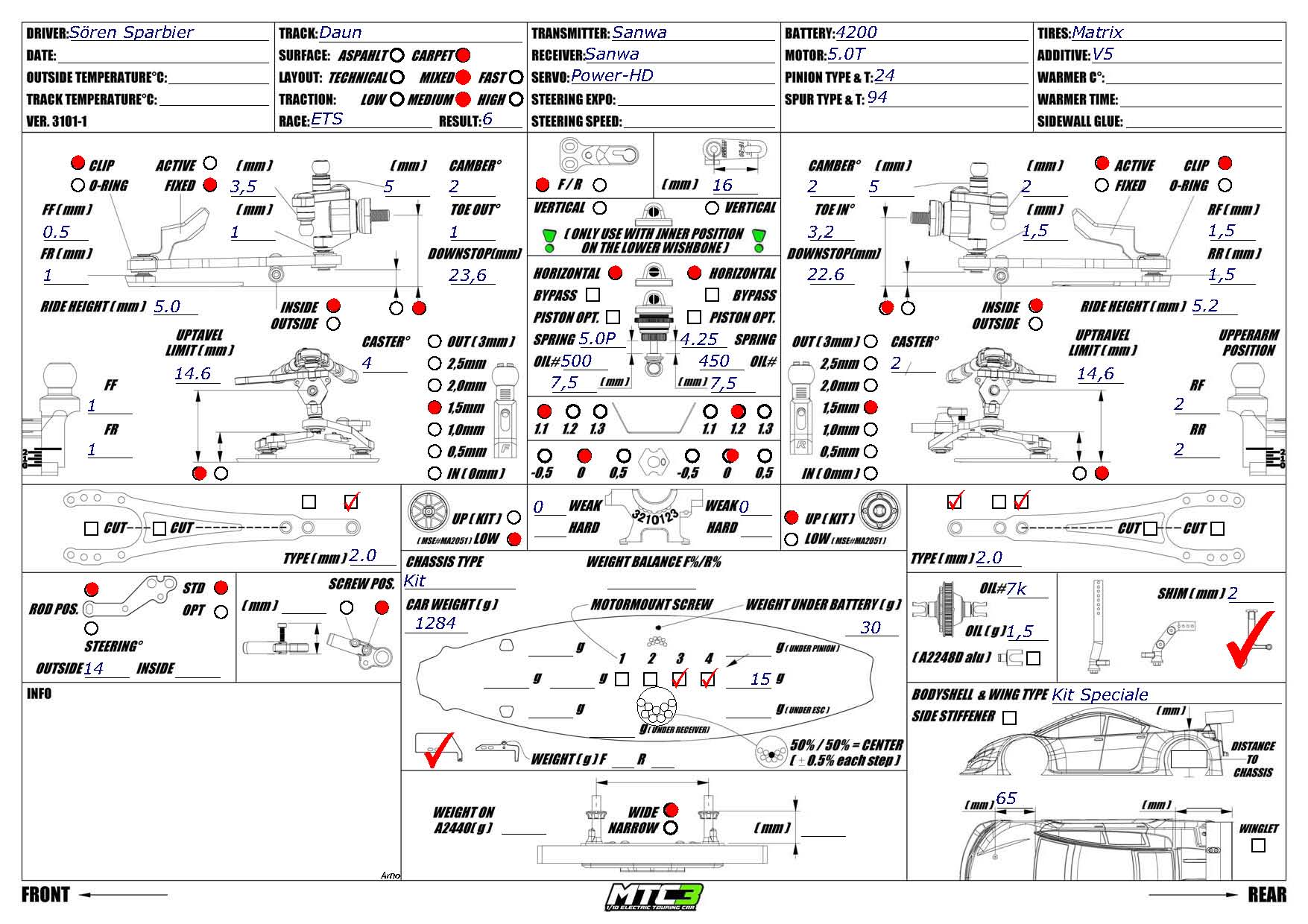 Mugen Seiki factory driver Soren Sparbier has great memories about Daun. He was able to win his first ever ETS at the same venue in 2025 which was his greatest success at the ETS. After that, he managed to win another race (ETS Vienna) and made multiple modified A-Mains too. Soren is rocking his MTC-3 which is built on a steel chassis from WeiRC. Soren is also using some Mugen option parts such as the bypass shock bodies in the front, as well as KPA steering arms.