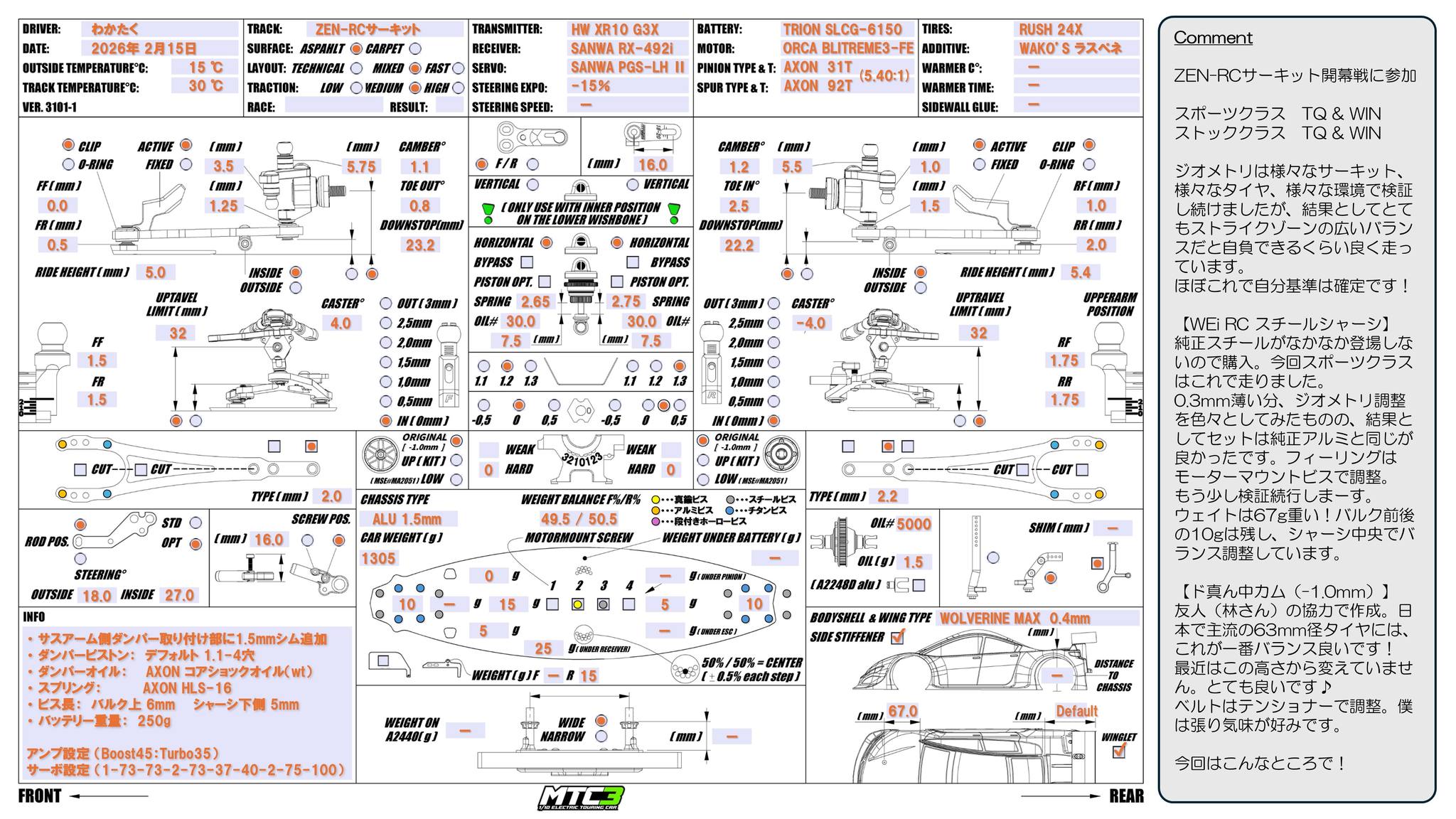 This is the setting from the ZEN-RC circuit race the other day. Fine tuning but the standard set stays the same. Pretty much my favorite run to me anywhere.