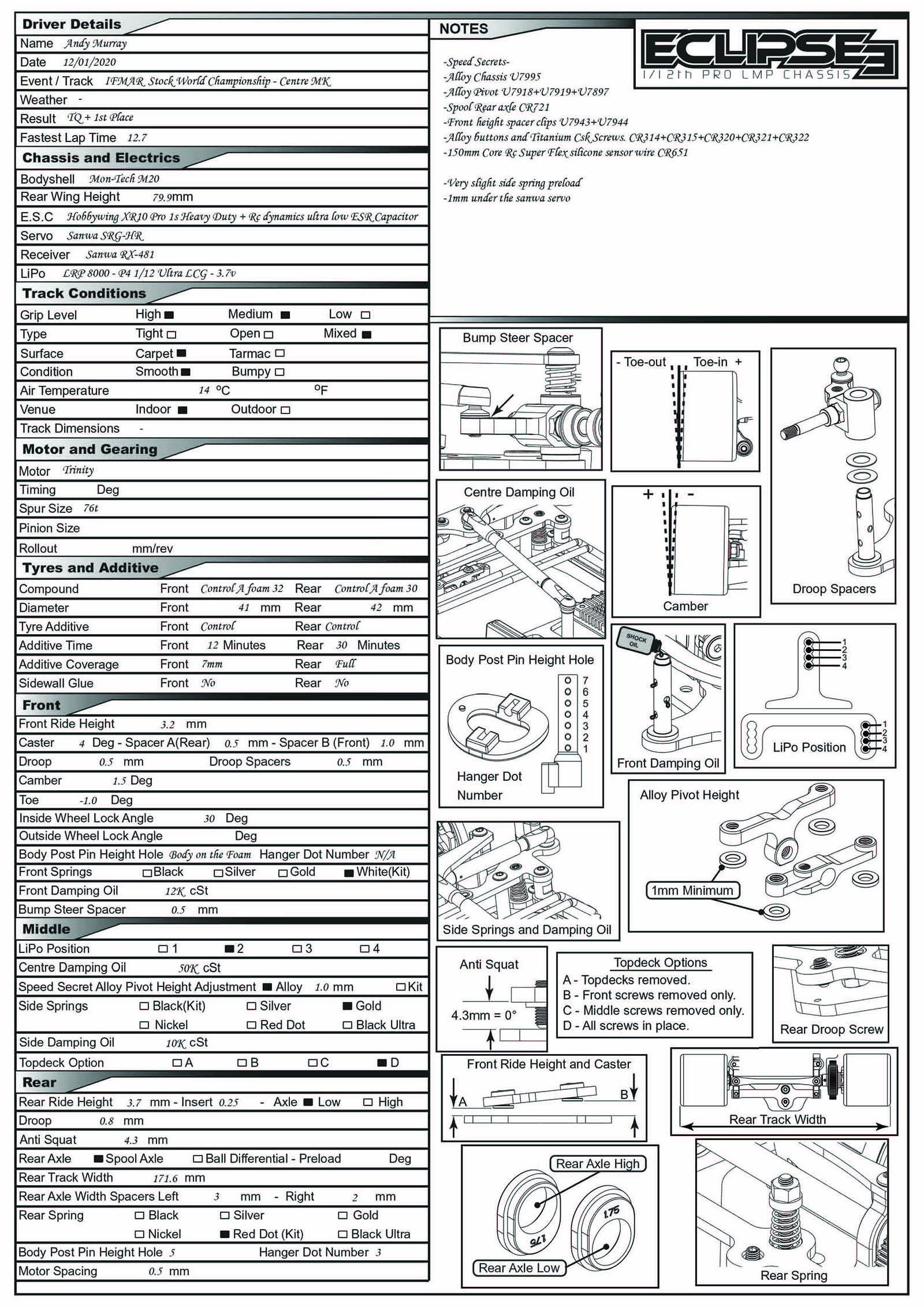 Andy totally controlled both leg 1 and 2 of the 'A' finals without any mistakes to secure his first and Schumacher's second IFMAR World title. Andy ran the Schumacher Eclipse 3 (K185), fitted with an optional alloy chassis (U7995), 1/12 Carbon Spool Axle + Clamp (CR721), Hobbywing XERUN - XR10 - PRO-1S HEAVY DUTY-V4.1 ESC (HW30112609), SANWA 1/12th Servo and LRP LIPO 8000MAH - P4 1/12 ULTRA LCG - 3.7V (LRP430268).