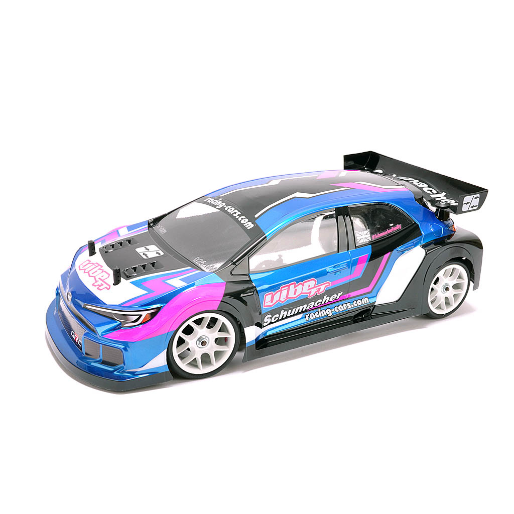 The Vibe FT is a competitive 1/10th scale front wheel drive touring racing chassis designed for dedicated club racers. Its modern layout delivers the tuning range and adjustability you’d expect from top level race platforms, but in an affordable and approachable package. The Vibe FT is built to be durable, consistent, and easy to maintain. Alloy shocks with purple anodised adjusters, UJ driveshafts, and purple alloy transmission components come as standard equipment. The strong yet flexible S2 chassis and top deck deliver confident handling and allow the Vibe FT to be tuned for any track surface. The Schumacher Vibe FT, find your line and drive to win.
