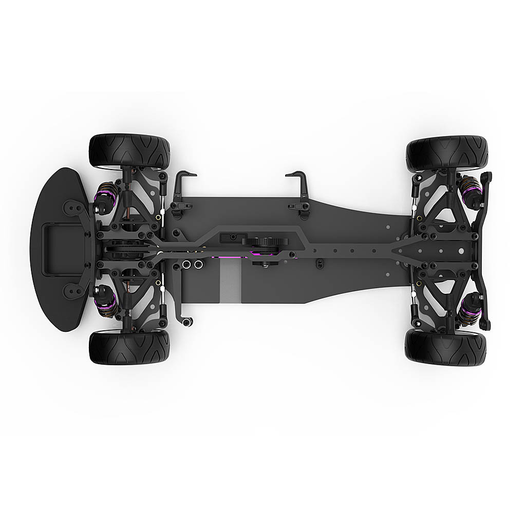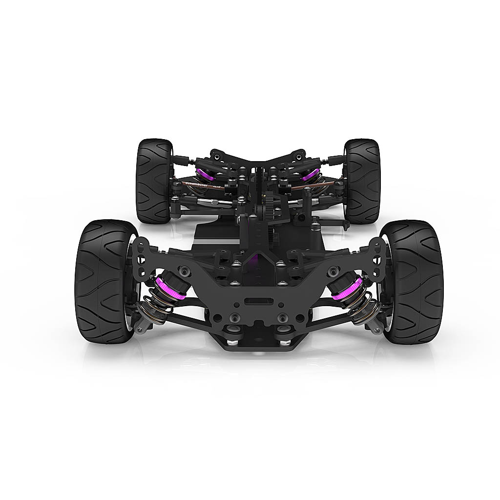 - Hub carrier design provides precise wheel control and performance. - Optional Anti-roll bars. - Rear track rods for infinite adjustment of rear toe-in. This can be tuned for the use of passive rear steering / toe-in change. - Arrowmax 48dp 72T Spur Gear included in the kit. - Fully ball-raced transmission.