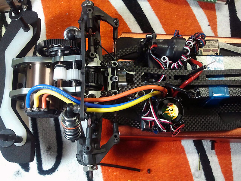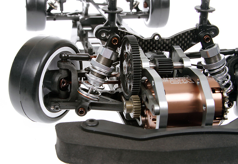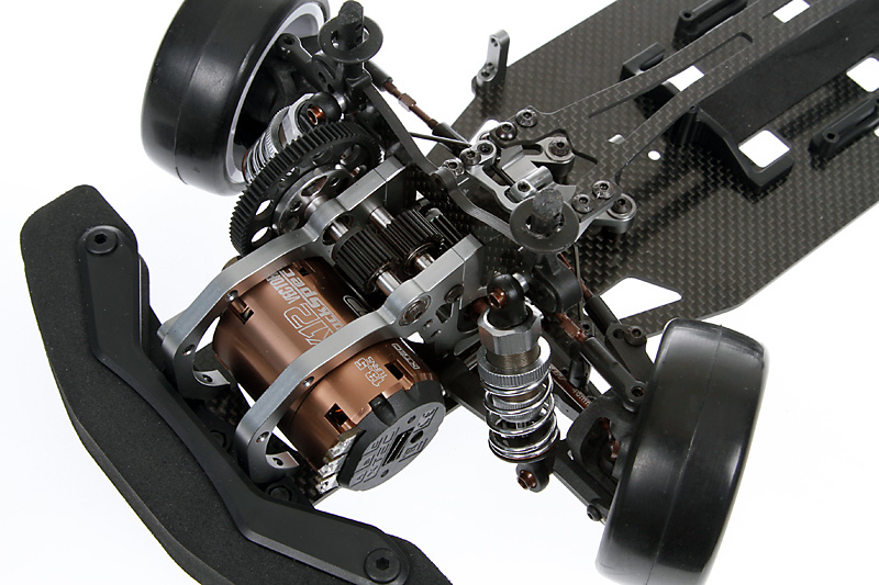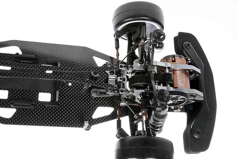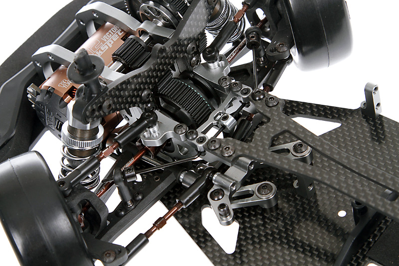 The alumnium parts and carbon shocktower create a very strong assembly to stand the brute power of the motor and form a strong basis for the suspension.