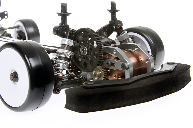The compact and light front gear-differential is powered through 2 smaller central gears, which connect to the spur / motorgear.