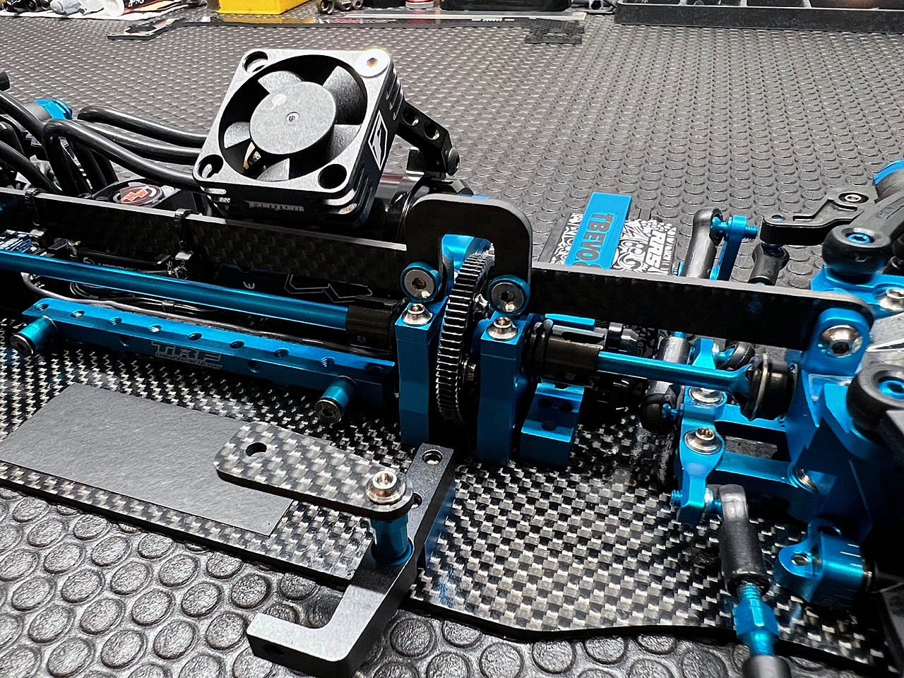 All screws above the chassis plate are titanium and a carbon fiber chassis brace above the spur gear mount was added.