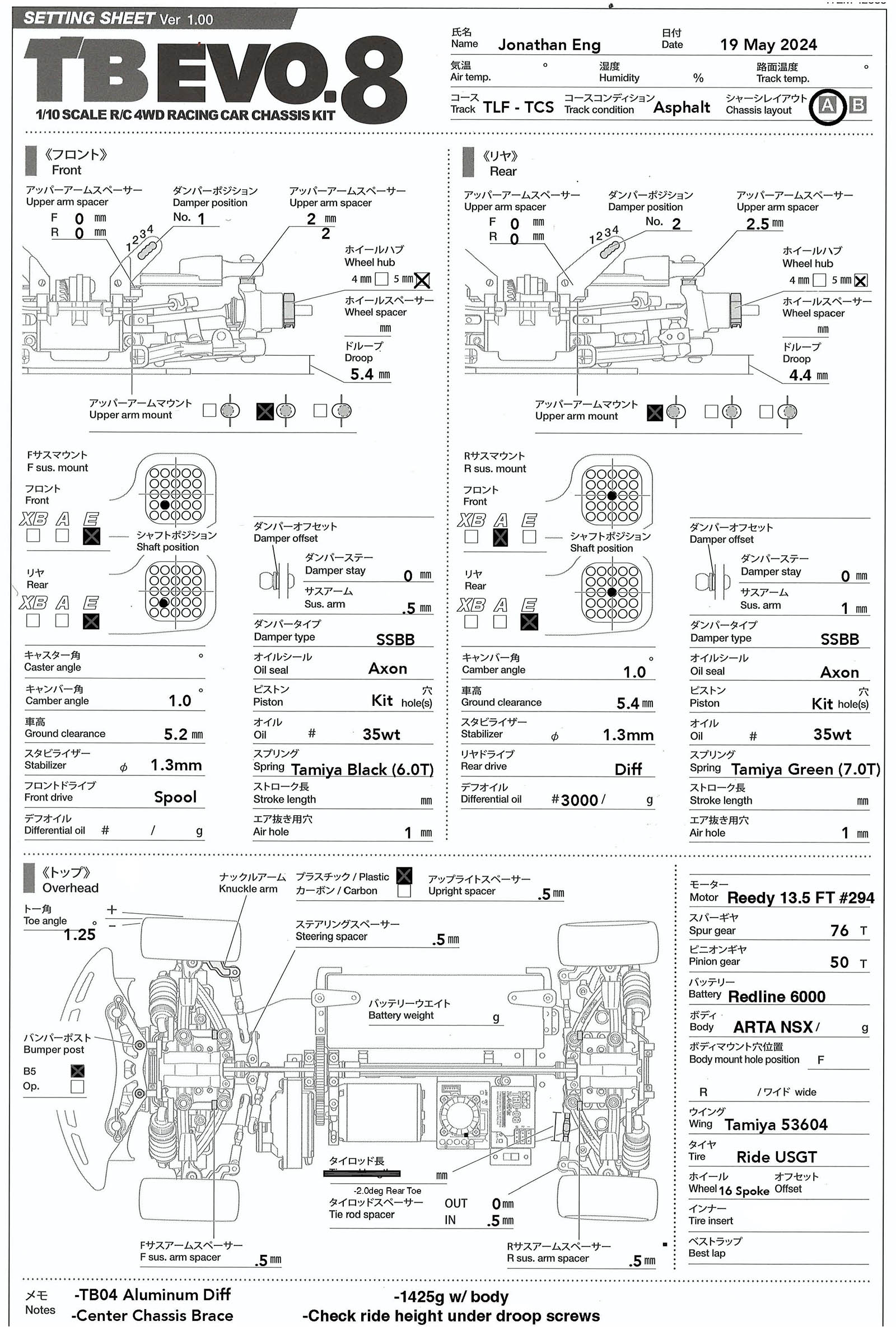 The car in its current trim is setup for the Tamiya Championship Series races.