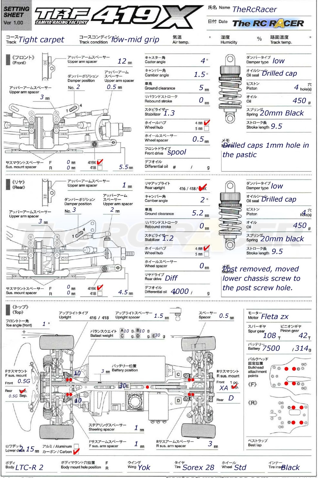 I got to the track as quickly as I could to see how the car felt with the changes and I was pleased to see that the chassis had responded well to the new settings. I could tell with just a couple of practice laps that I had made the car feel more alive again. The rear end was still planted, but the camber gain on the front really helped give the front more turn in and more on power exit steering.