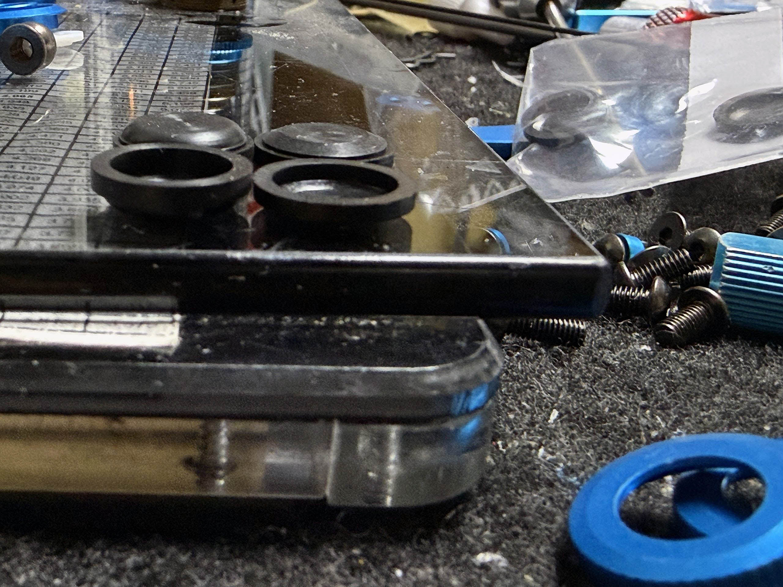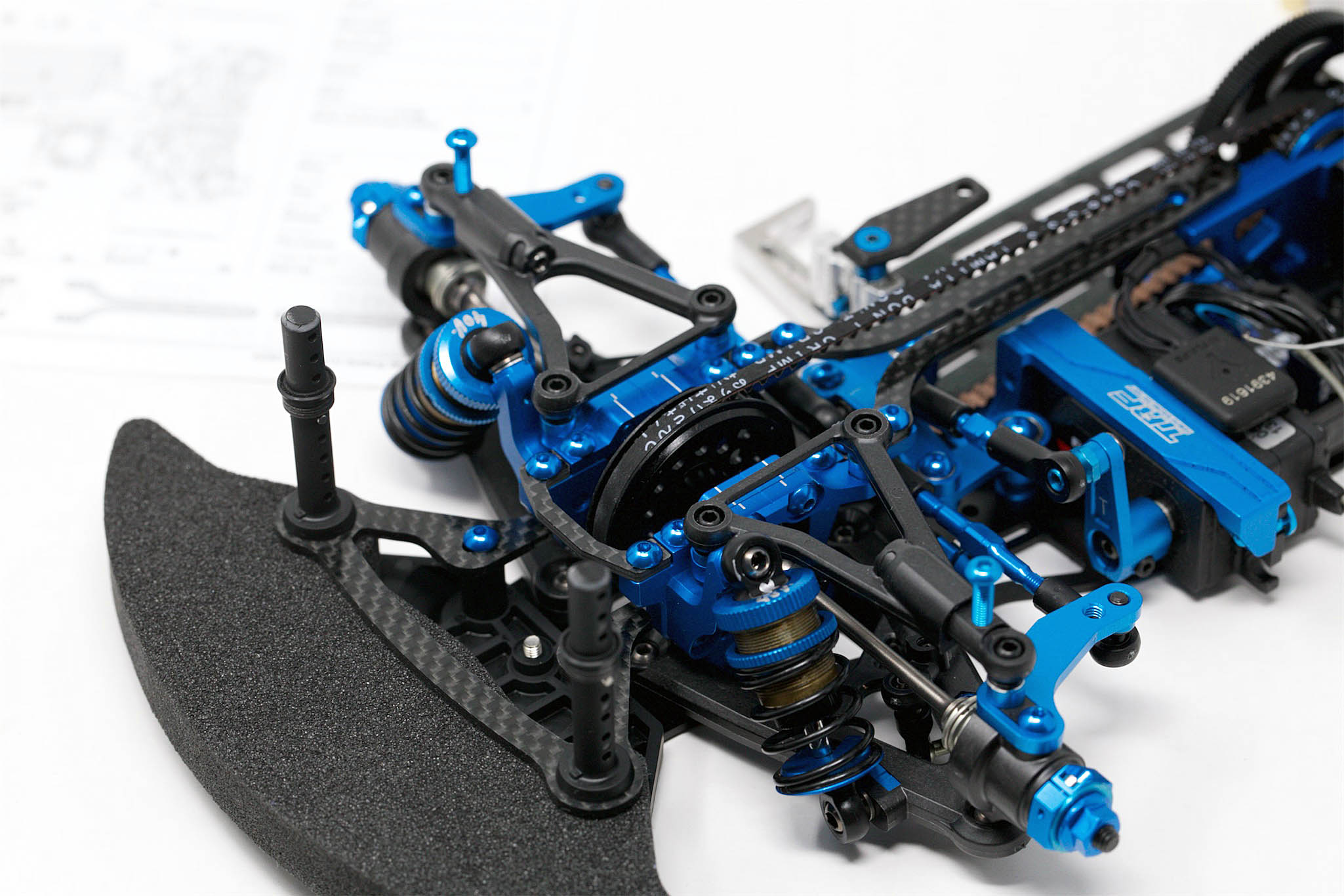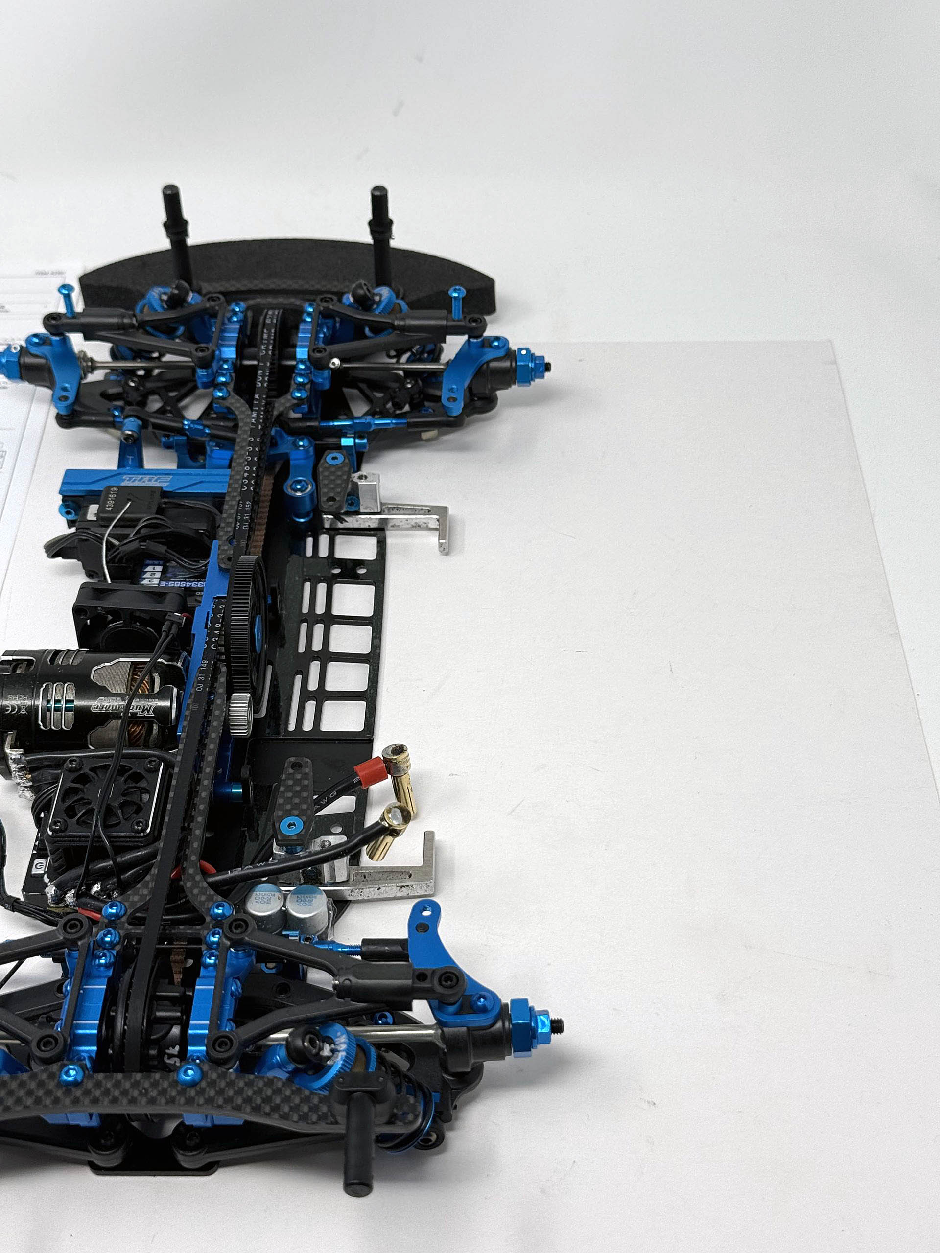 – With new bodies to be adjusted, I will take advantage of the wider rear carbon body mount. For now, I am using my TRF421 bodies, which are all set to go.