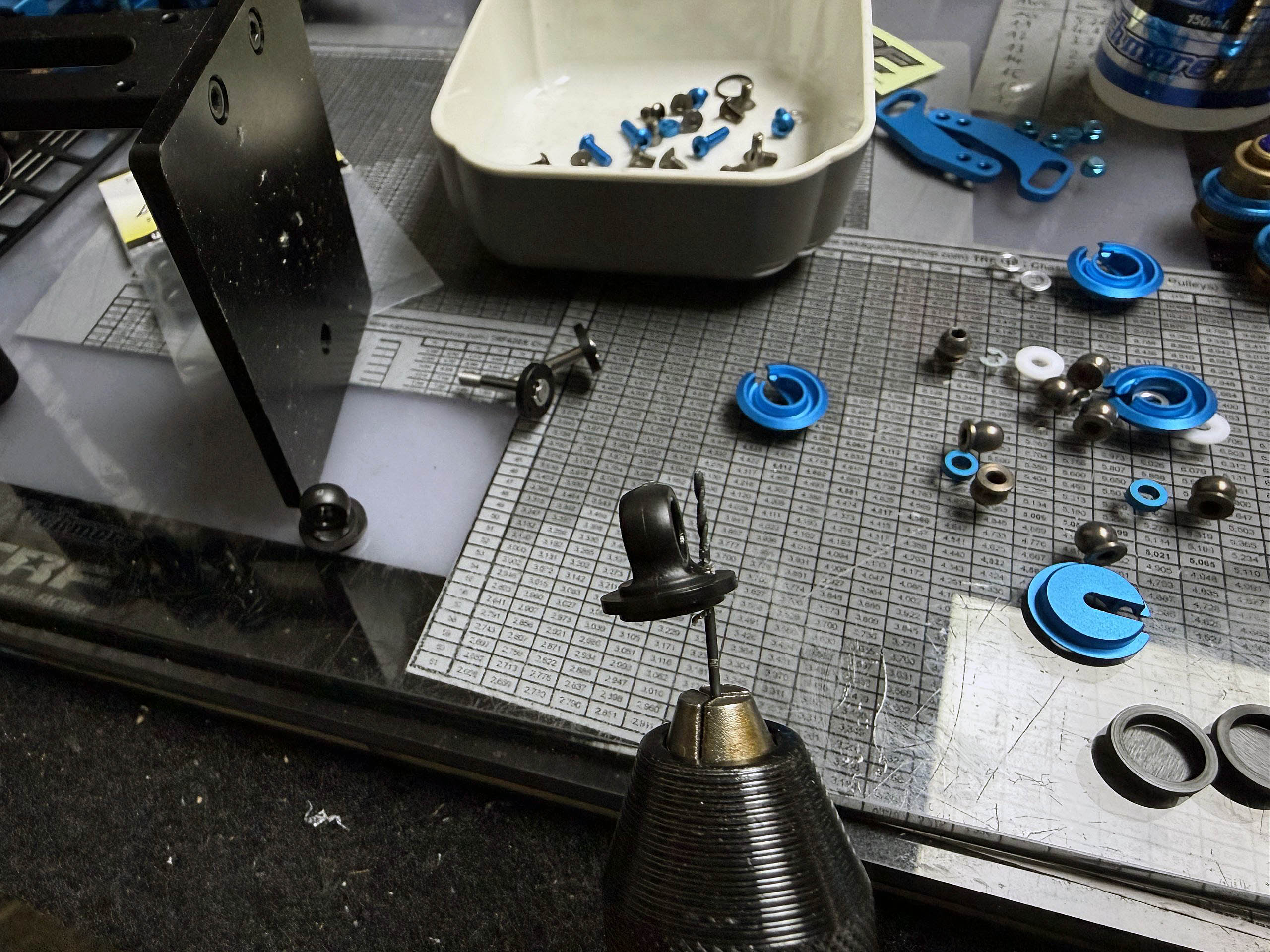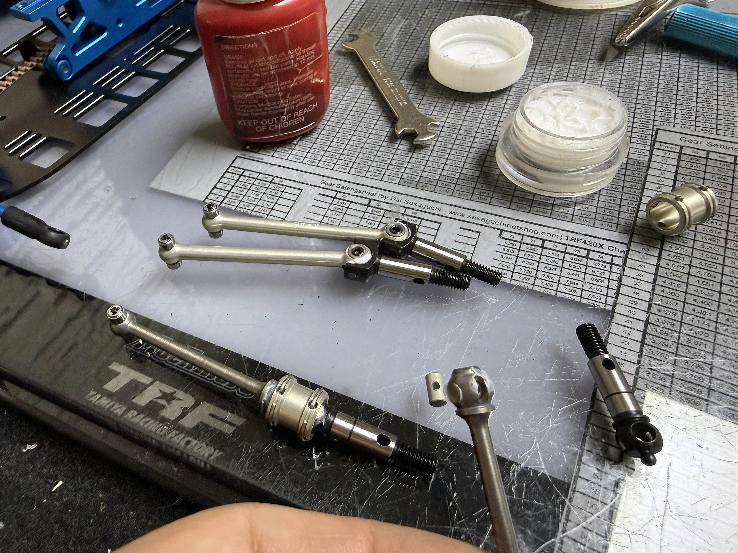Starting with an initial setup with many good points taken over from my last TRF421 testing at Arena33 in Andernach, I will see on Monday how the setup will work. For sure, I will tweak it here and there. The most interesting point for me will be the Axon HLS-SS Spring Series with shorter springs. Even though the stiffness is rated the same, they feel pretty different.
