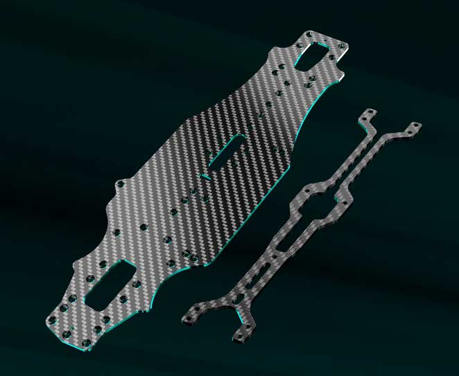 2.2mm Eco-Graphite Chassis and 2.0mm Eco-Graphite Upper Deck.