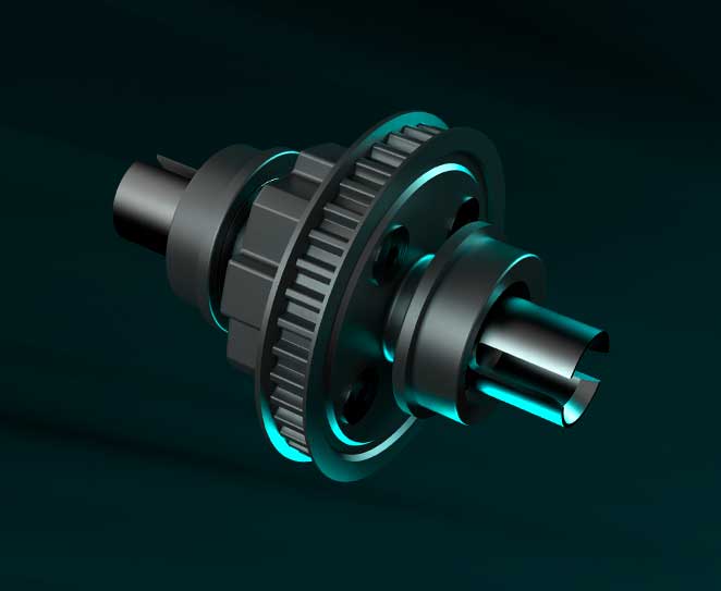 An ultra-compact and efficient gear differential with four composite satellite gears, a double gasket system for a perfect seal, and a durable differential case with unclosed screw holes.
