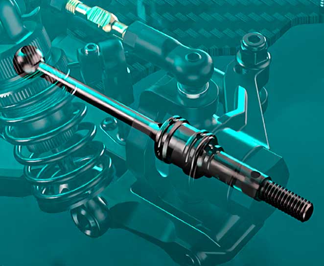 Double joint CVD driveshafts for vibration-free steering inputs and increased corner speed.