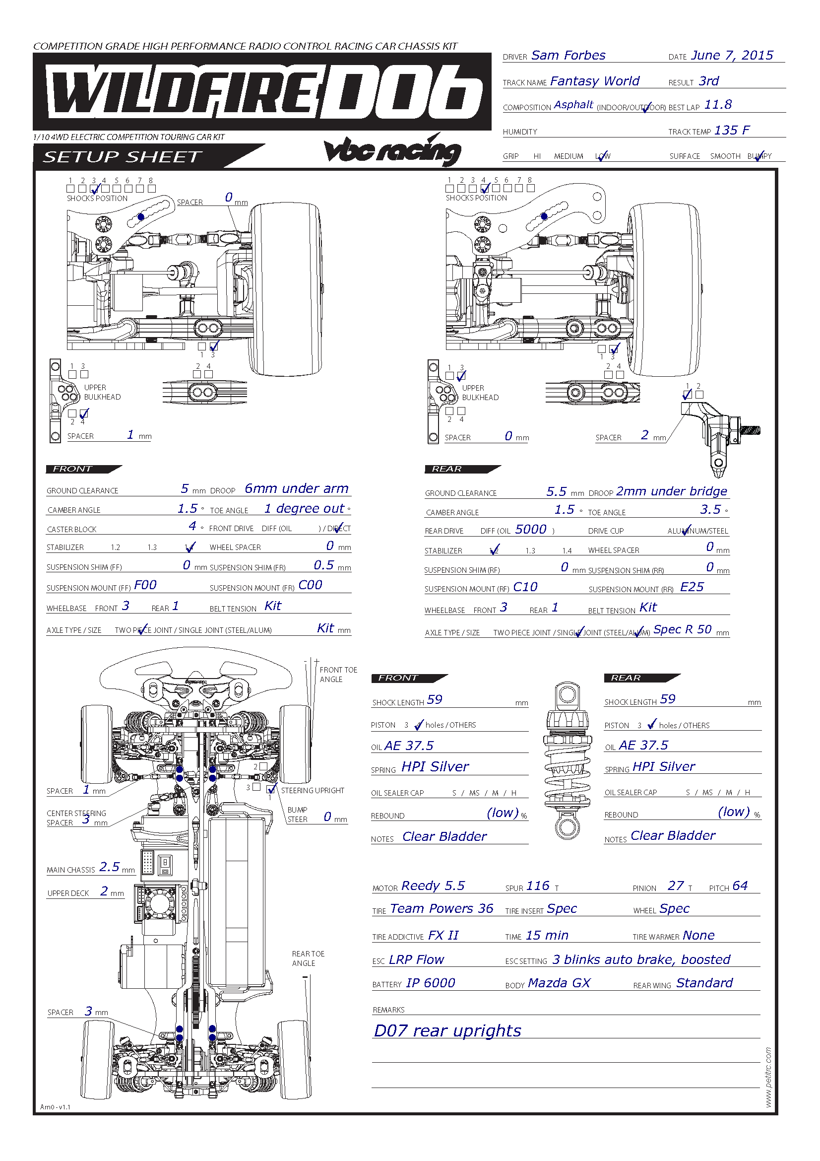 Here is a preliminary setup sheet from the race last weekend at Fantasy World Hobbies. I'm sure this will change as the Summer season unfolds, but it's a starting point.