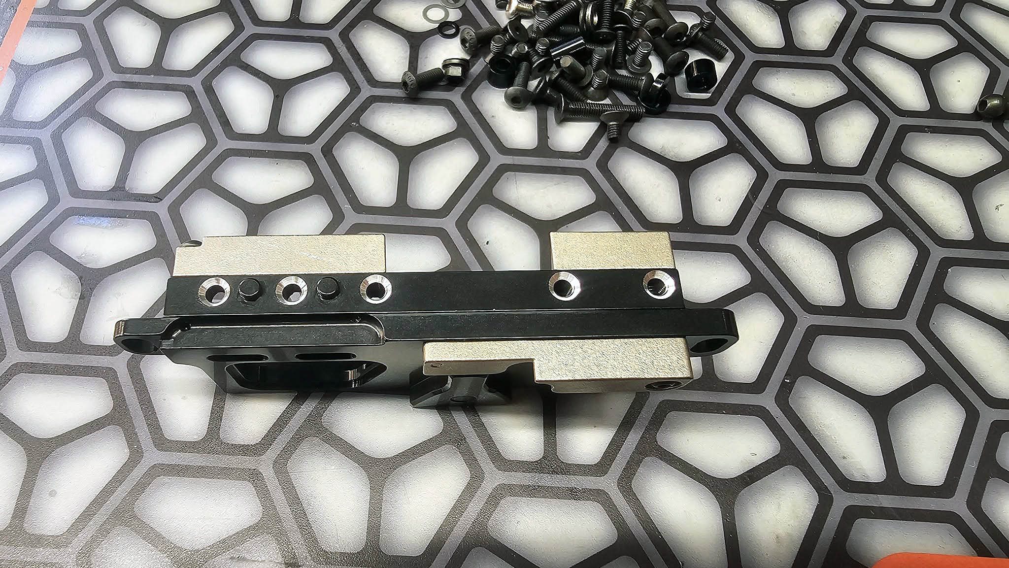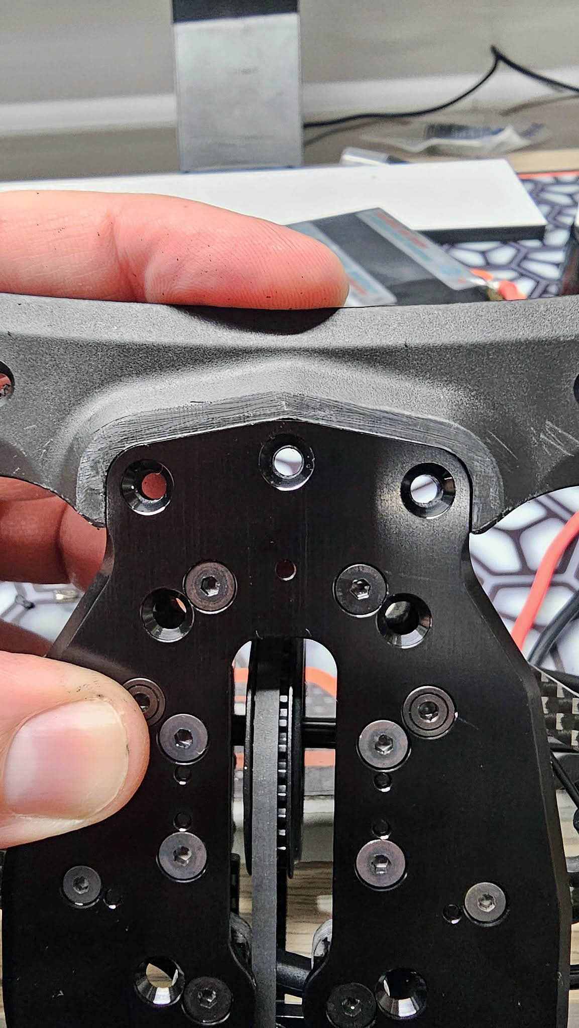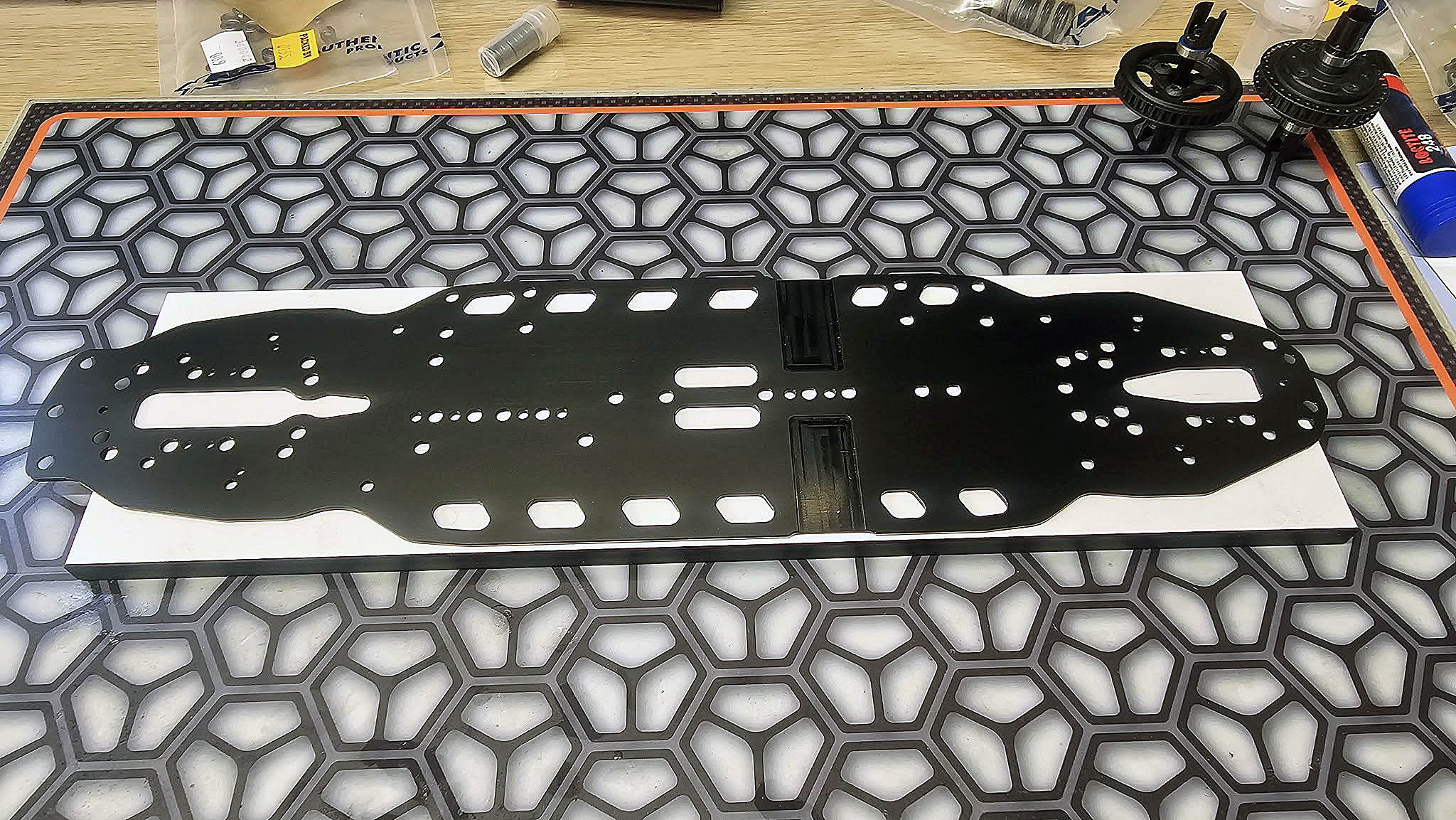 I line it up to the chassis and score a line with a knife in line with the chassis. I then cut it away a little at a time until it is perfectly flush with the chassis. I also opened up the 3 holes to allow the screws to sit like the bulkheads etc.