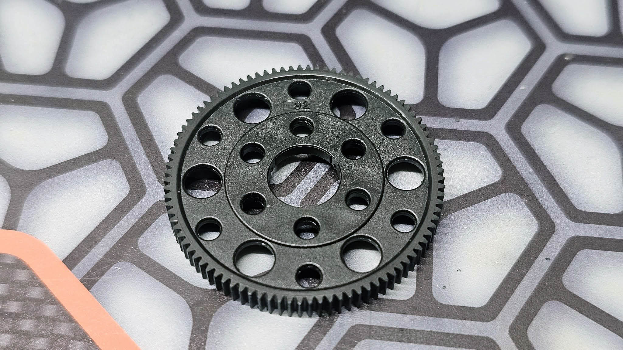 I have fitted a 92t spur gear for 17.5 stock racing (next weekend at MICC - Midland Indoor Carpet Championship)