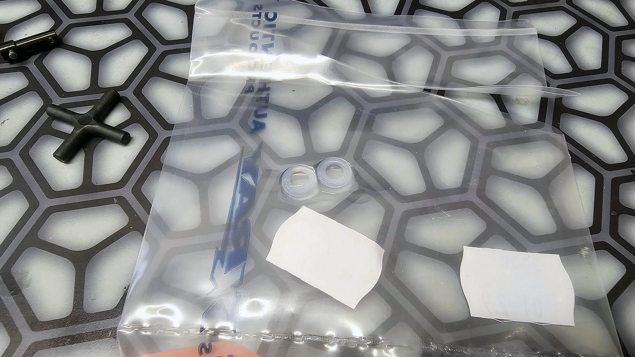 Make sure there is no flashing on the shock shaft guides and pistons after removing from the tree, you get a choice of 4x1.1 or 4x1.2 mm pistons.