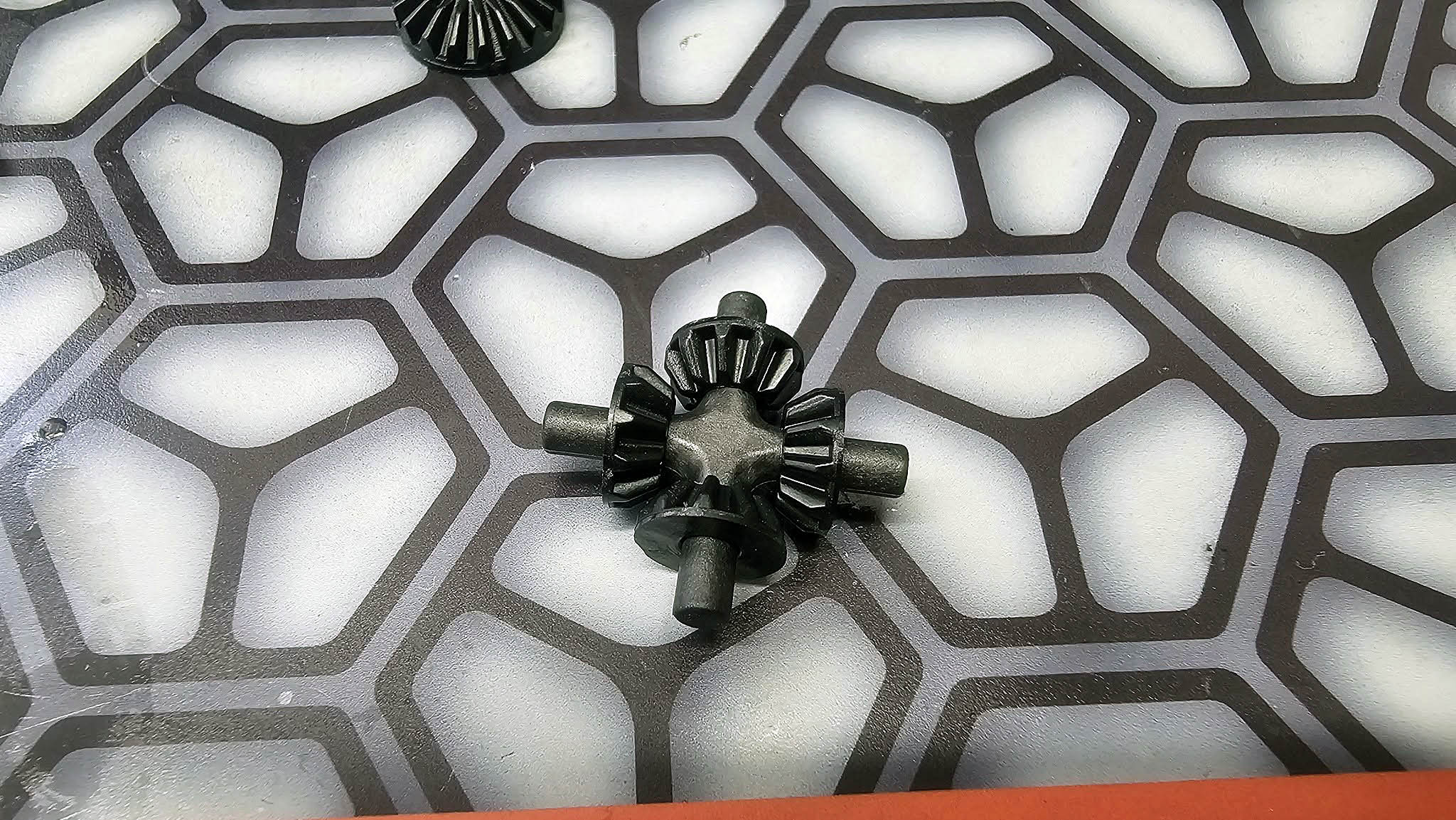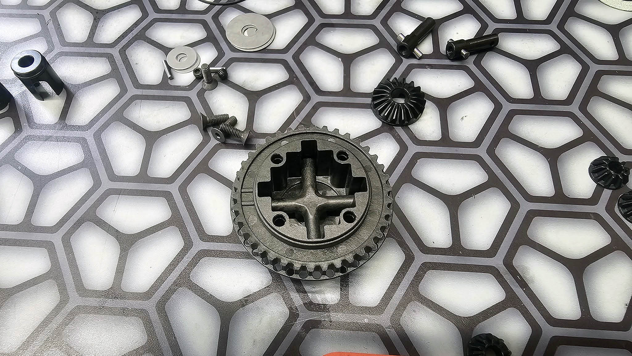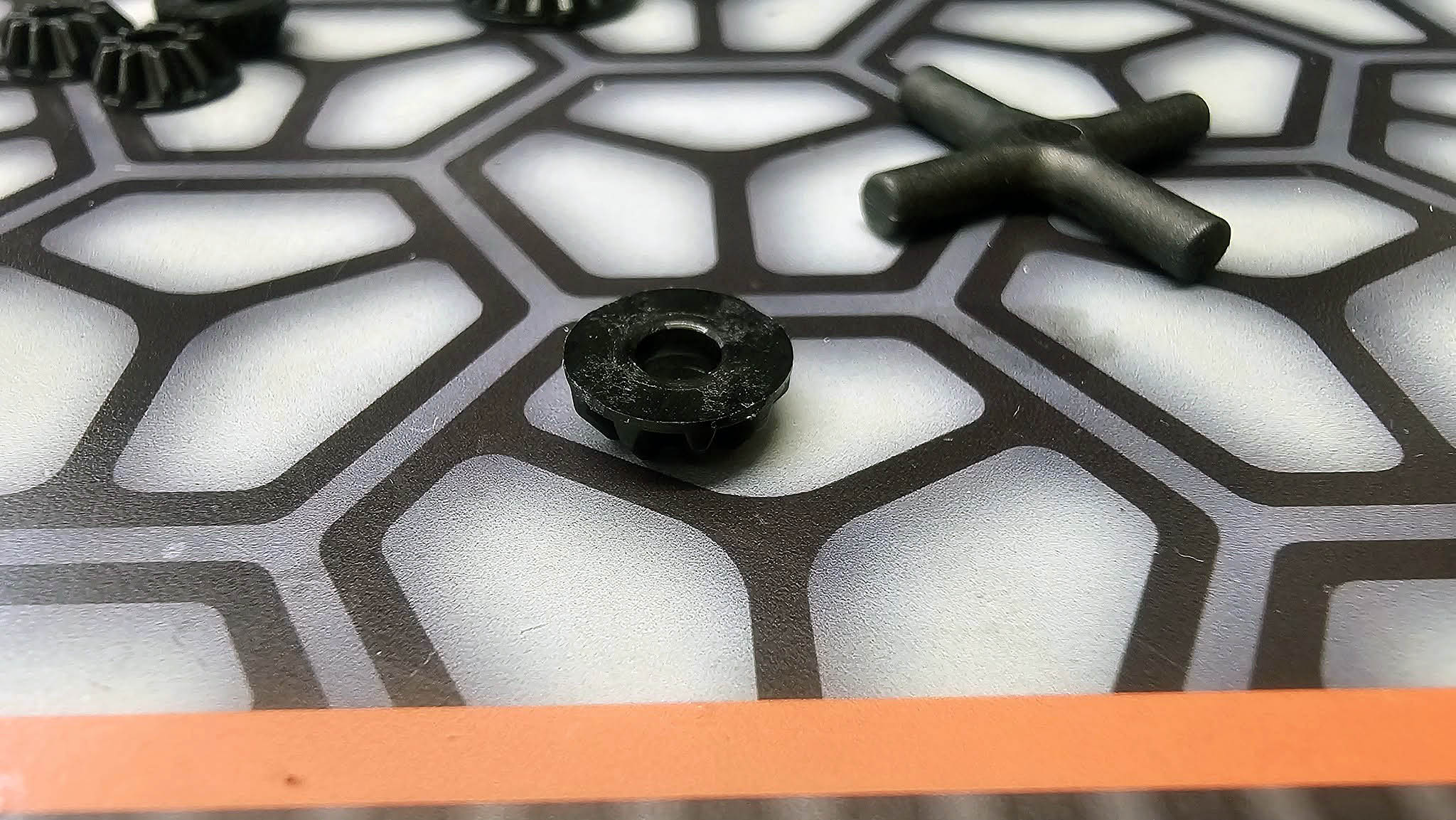 Make sure the cross shaft drops nicely into the diff case, you may need to remove a little flashing on the end of the cross shaft to do this.
