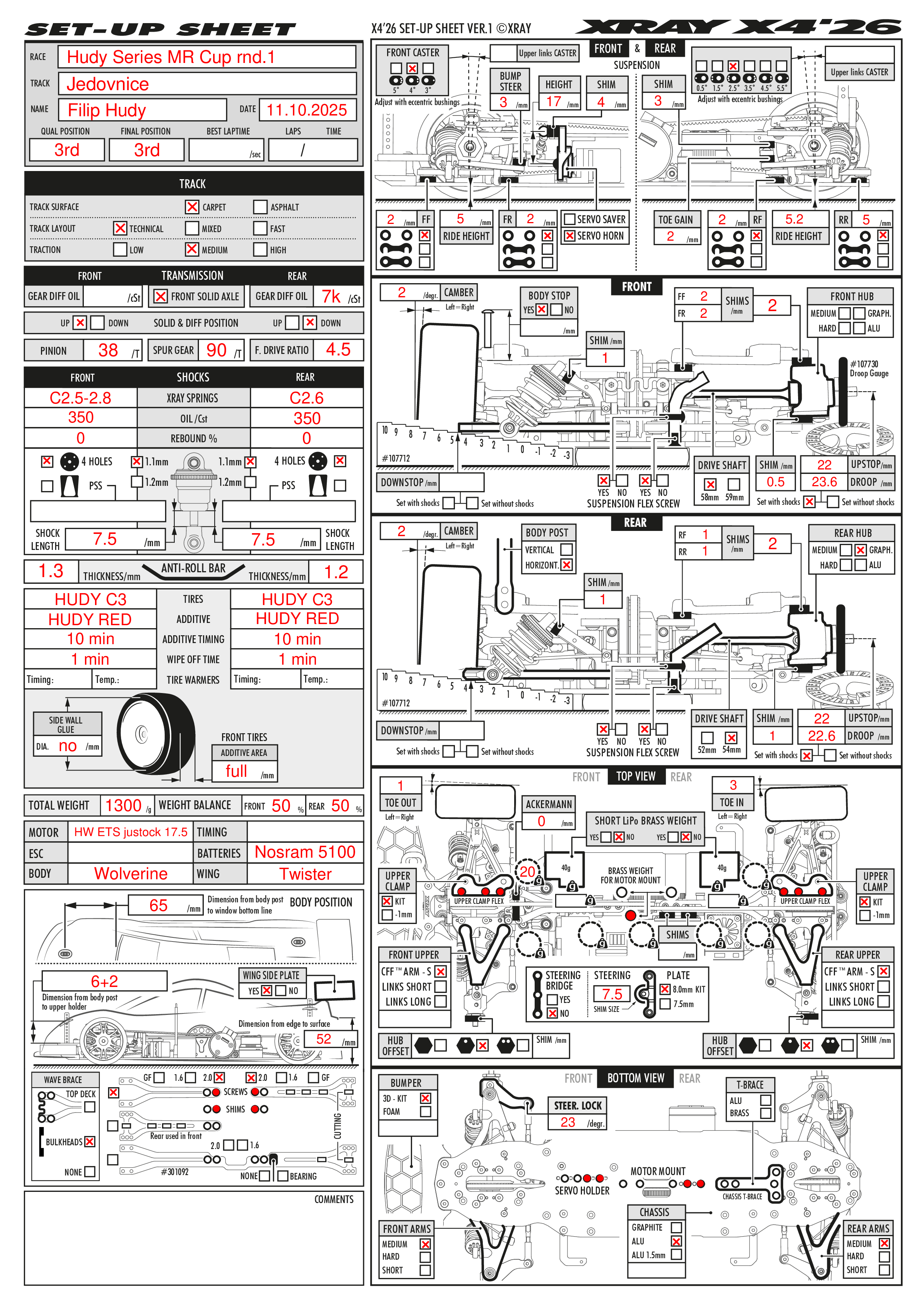 Many drivers came to check out my car and asked about my setup since it looked and handled so well. That's why I decided to make this post - to share my setup sheets from both events, along with explanations of the setup changes my father, Martin Hudy, made to adapt the car to different track conditions and make it easier to drive.