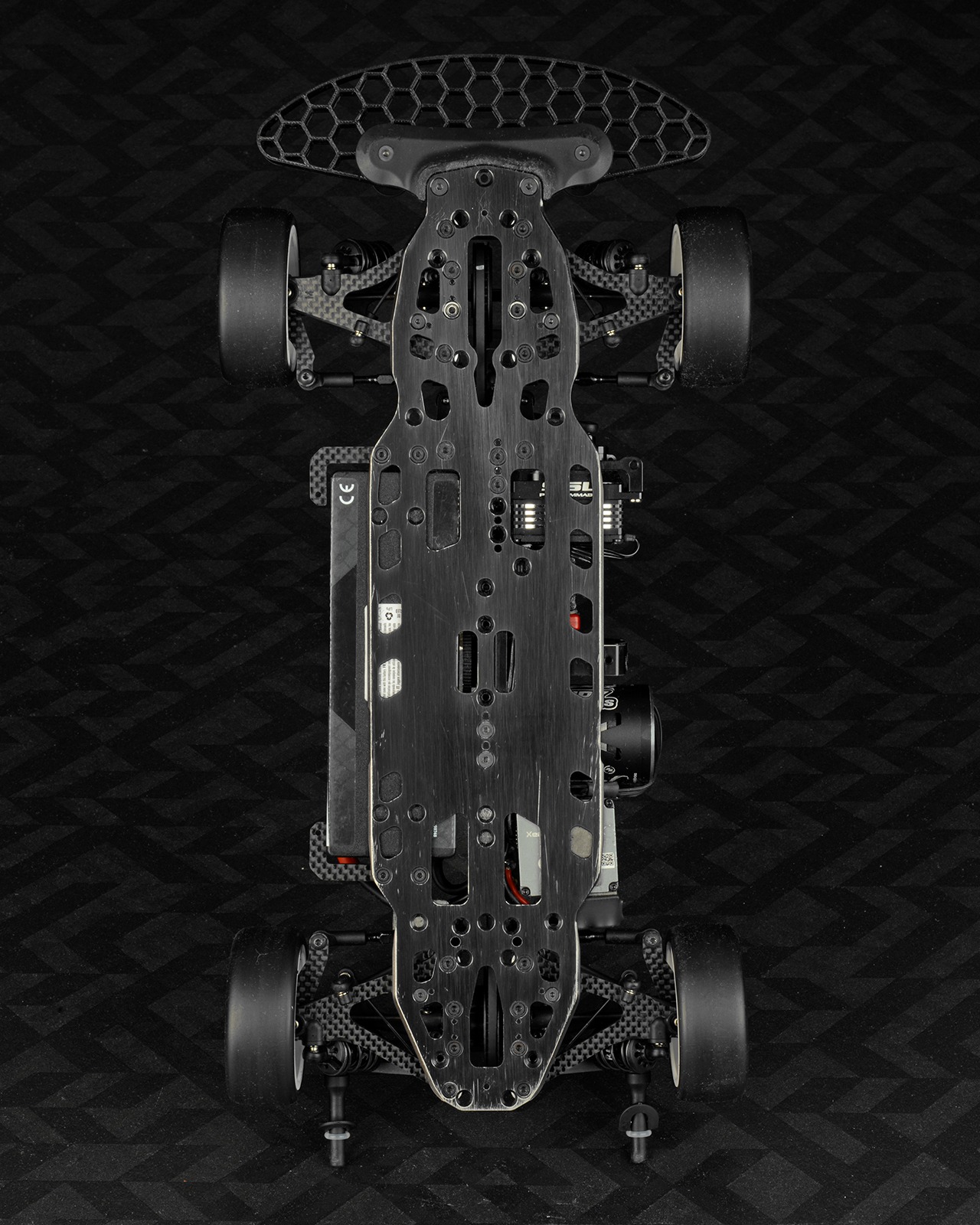 Since the Stock class requires a lot of corner speed, I prefer using the -1mm upper clamps. This gives the car slightly less initial steering but significantly more mid-corner steering — which I personally prefer. To regain some initial steering response, I moved the front wave brace from the bulkheads to the top deck. I really like this option on small, tight tracks. On bigger, more open tracks, I prefer running the wave brace in the original bulkhead position.