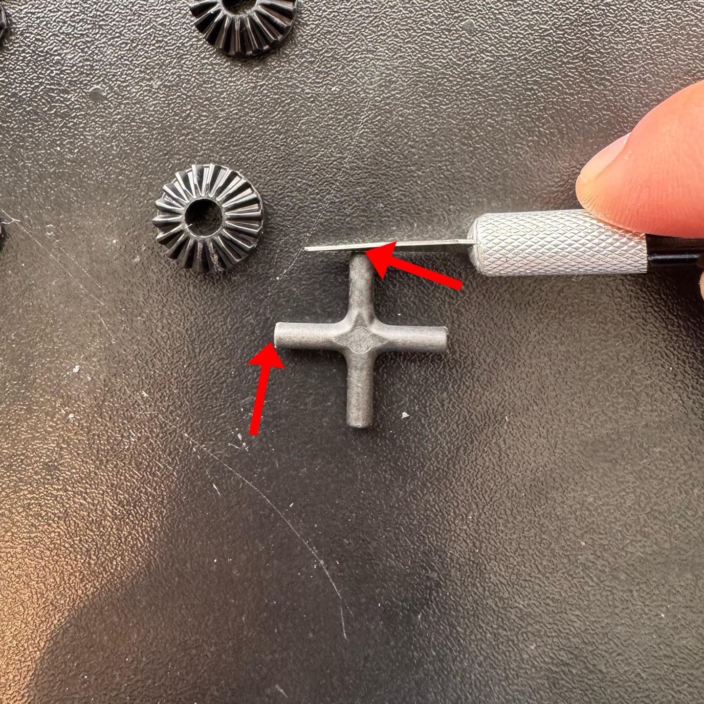 X4’26 tech tip: when building your differential, use a hobby knife to remove the mould flashings from the cross pin that holds the diff gears, to make sure that it fits perfectly in the diff case. It’s sometimes also necessary for the gears - pay attention! This will guarantee a perfectly smooth diff action. This tech tip actually applies to all T4/X4 differentials! Have fun building your new kit!