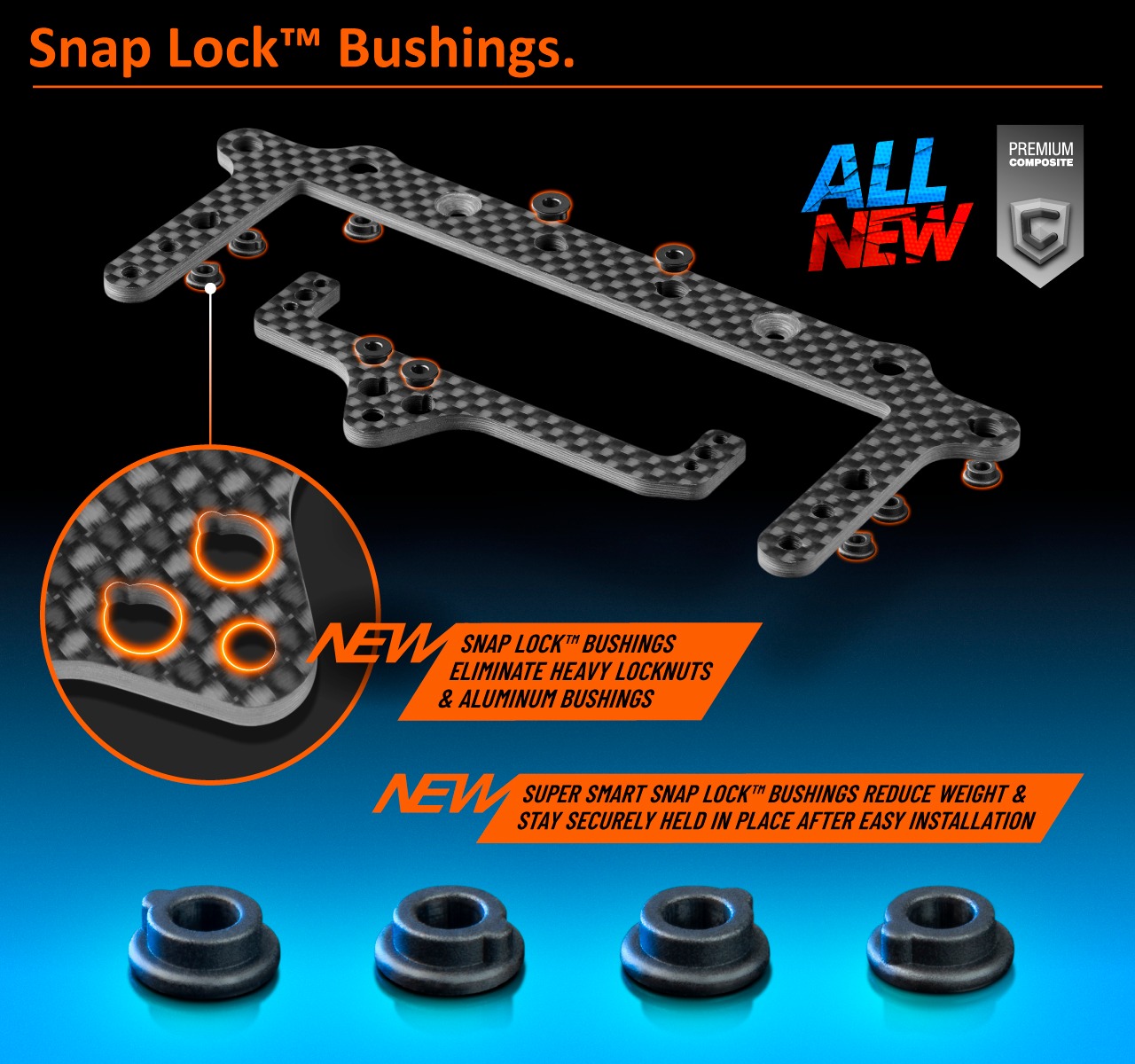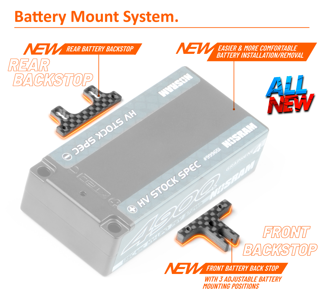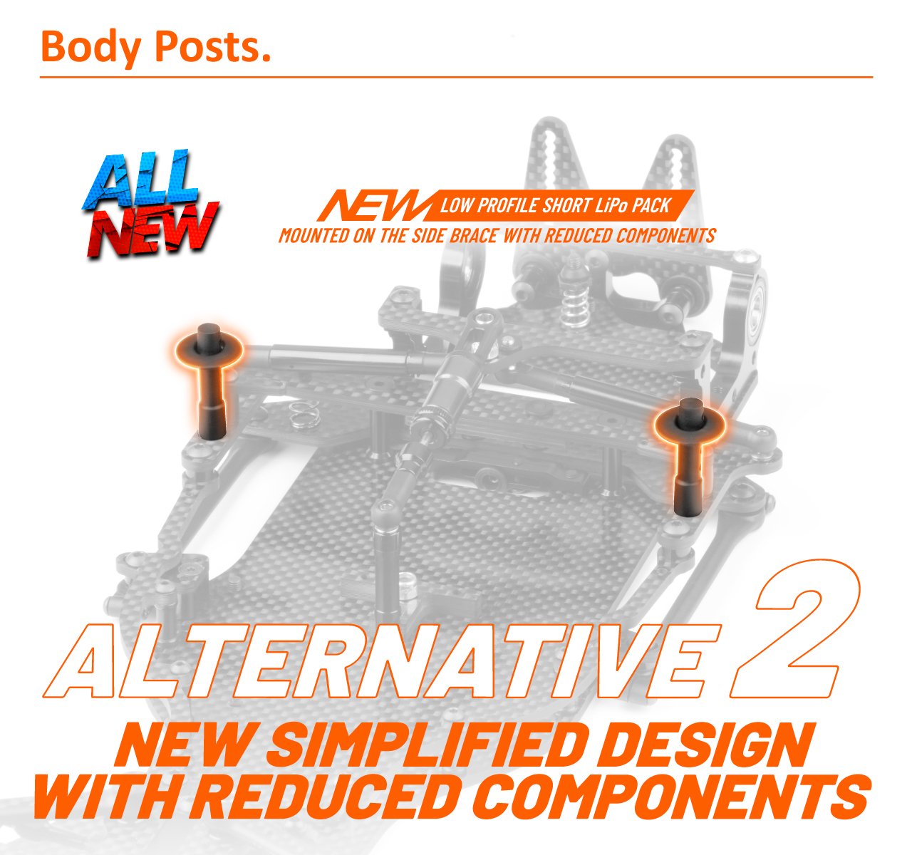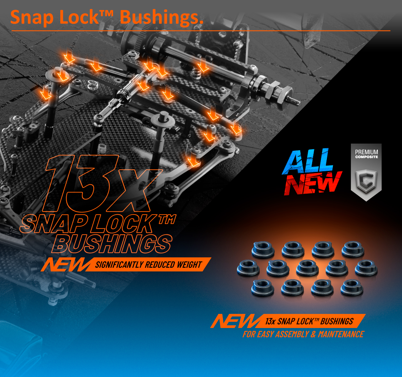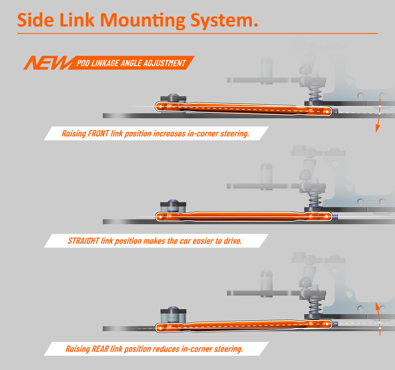 X1'25 All-new features:All-new one-piece chassis design with more consistent handling in all conditions and improved tweak resistanceNarrower chassis shape reduces chassis drag during corneringRear POD concept on top of chassis for less drag and improved tweak resistanceAdjustable POD angle controlled by set screw at the rear of chassis for fine tuningRear spring location improves forward traction with increased adjustability and lower CGRear droop adjustment through rear POD spring tension that sits in a special composite adjusterUniversal rear spring nut holder works for both conical and linear springs2-piece lower pod plate mounts to the bulkheads, offering droop and pod angle adjustments with support for the side springsUltra-light, lower CG bulkheads are foundation of new POD systemLeft side bulkhead has mounting holes incorporated to mount optional motor cooling fanLowered pivot holder and small diameter pivot ball offer lower roll center positions and greater adjustment rangeCarbon Fiber top plate for center shock and side damper mountingsNew rear carbon side spring brace aligns with new POD geometryComposite Snap Lock⢠bushings press into carbon fiber parts for secure and reliable hardware installationAll-new spring-free center shock absorber with 1-hole piston provides exceptional bump handling, low maintenance, and helps lower CG.Side braces with a narrower design save weight and leave more space for electronics and also allows better body fitmentNarrower side brace mounting holders use M2.5 screws for weight savingsAluminum side link holders with 2-pin design for more rigidity and improved tweak resistance2-pin carbon fiber side link plates integrate with aluminum holders for reliable alignment and offer 3 side link front pivot mounting positions for maximum adjustabilityNew wing mounting system which saves weight and provides cleaner design and improves the durability and track width adjustment possibilitiesNew adjustable wing angle for greater adjustment possibilitiesNew redesigned lower arms with more material around the holes for improved durability in serious crashesNew battery mounting system works with rear brace and front backstop for convenient installationTwo body post mounting position options for different battery packs allows for different configurationsAluminum side spring retainers for more precise and consistent side spring mountingMost commonly used soft front springs included in kit for best all-around starting set-up