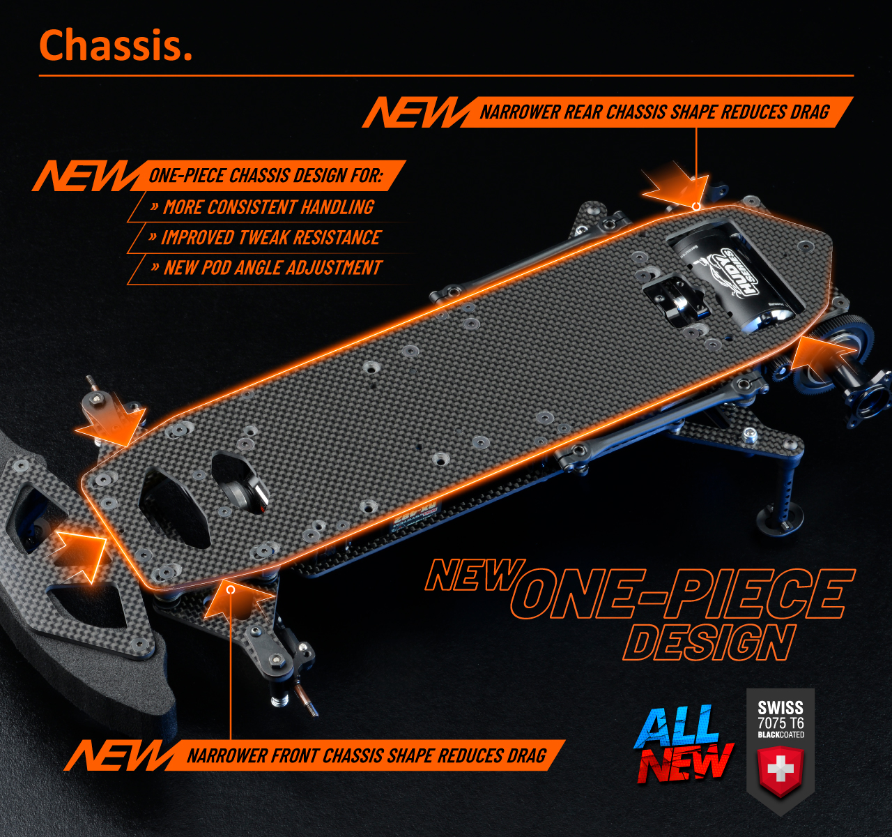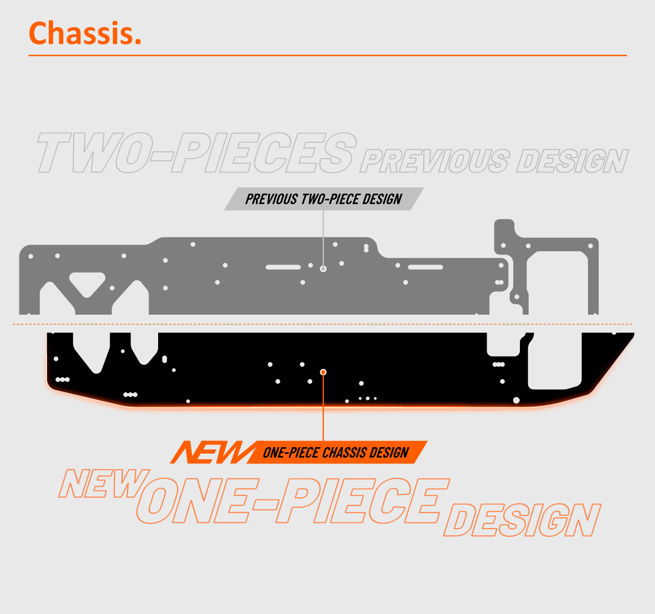 One-piece chassis design for a consistent handling in all conditions and superior tweak resistance.