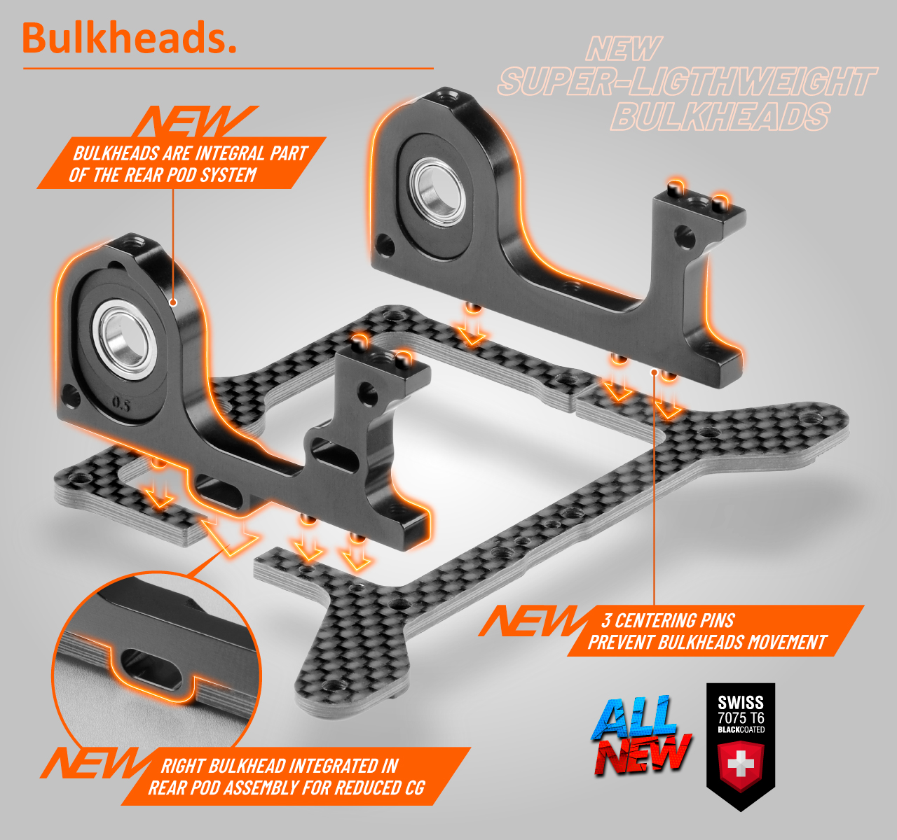 - Ultra-light, low CG bulkheads are foundation of the pod system