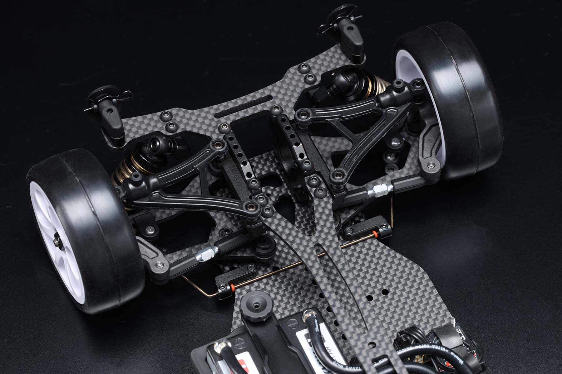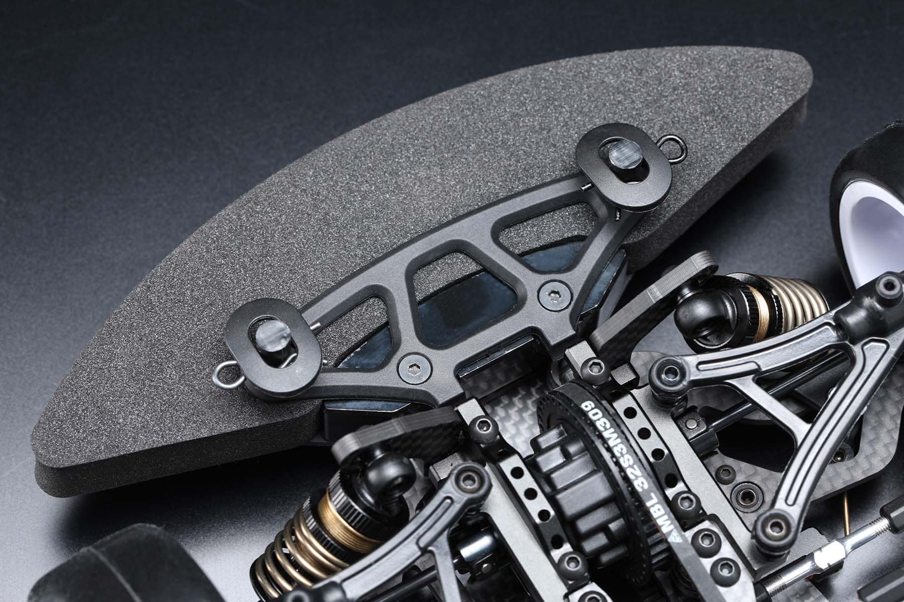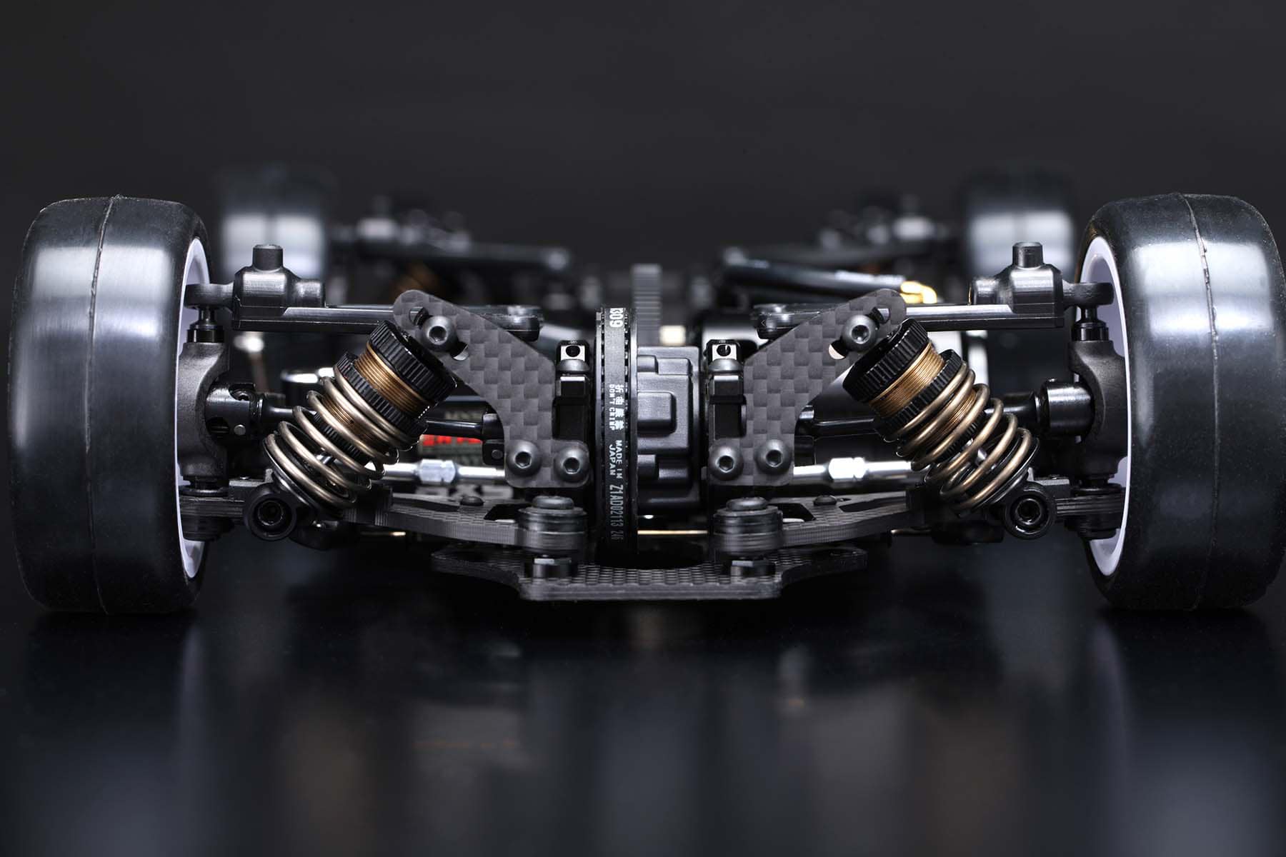 The front and rear suspension uses the same A-arms as the latest competition touring car, the MS1.0. The upper arms are made of resin, which makes them easy to set up and provides high traction.